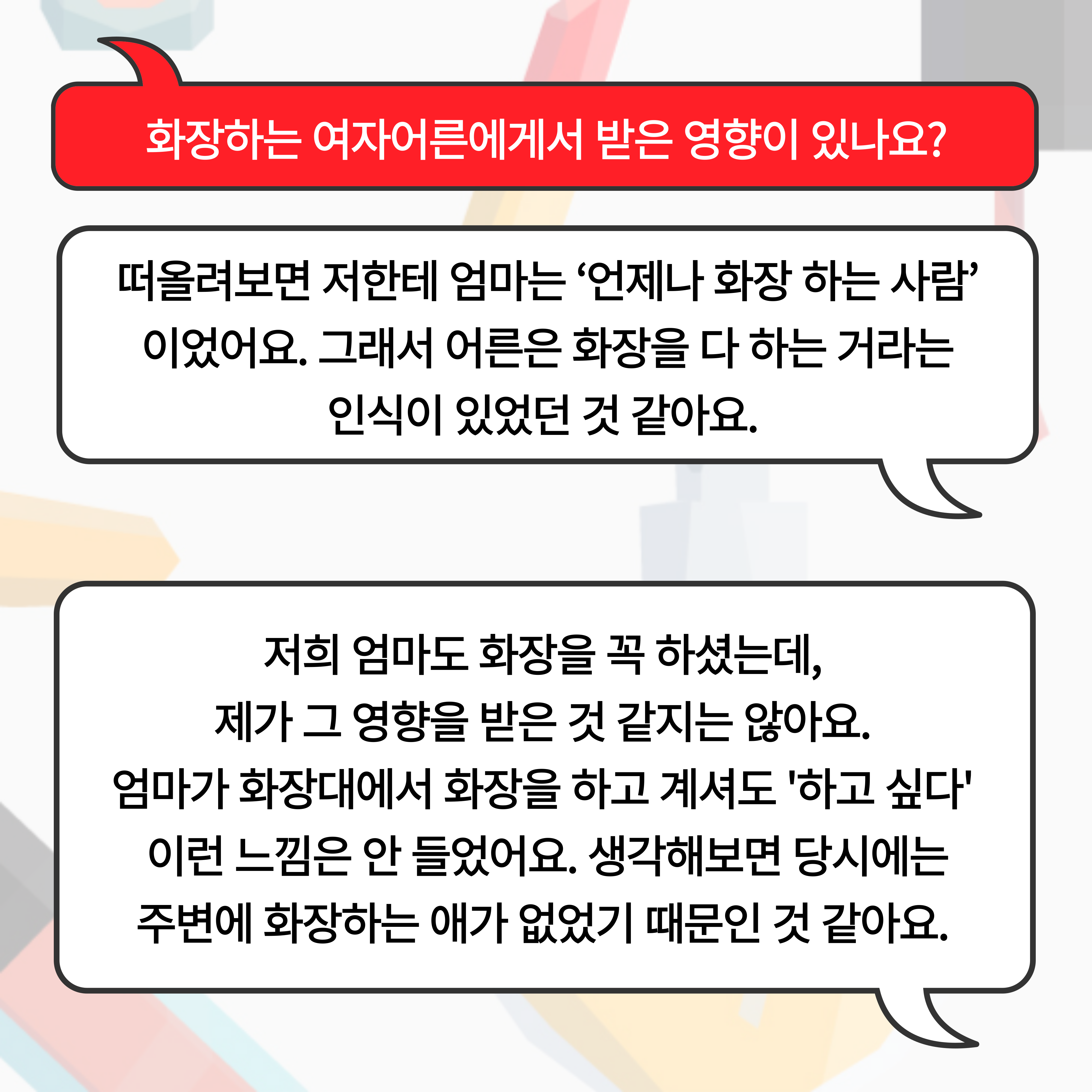 | <화장을 한다는 것에 대하여> 연속 인터뷰 vol.3 중년 여성 (1) | 2024.10.25 |