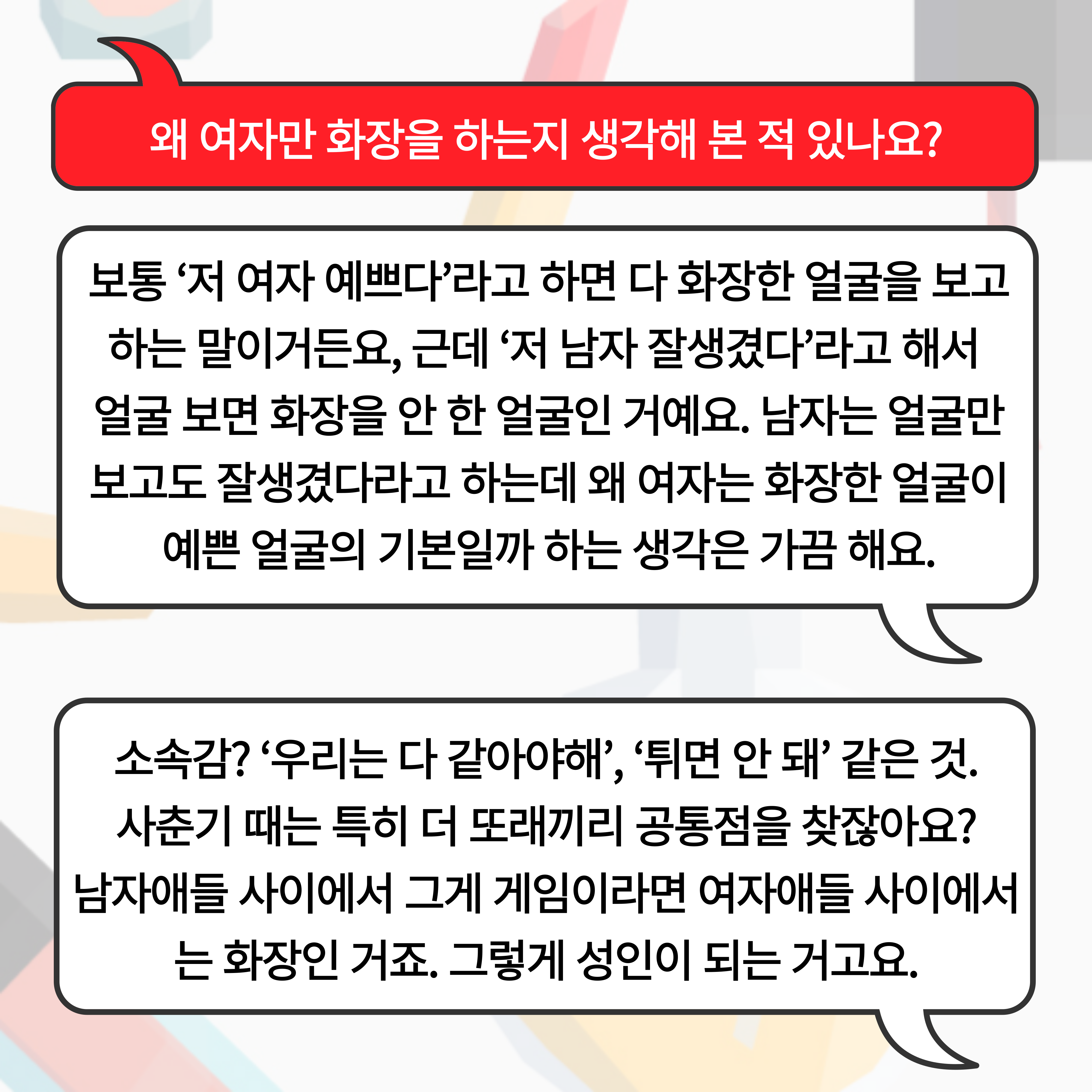 | <화장을 한다는 것에 대하여> 연속 인터뷰 vol.1 청소년 (0) | 2024.10.21 |
