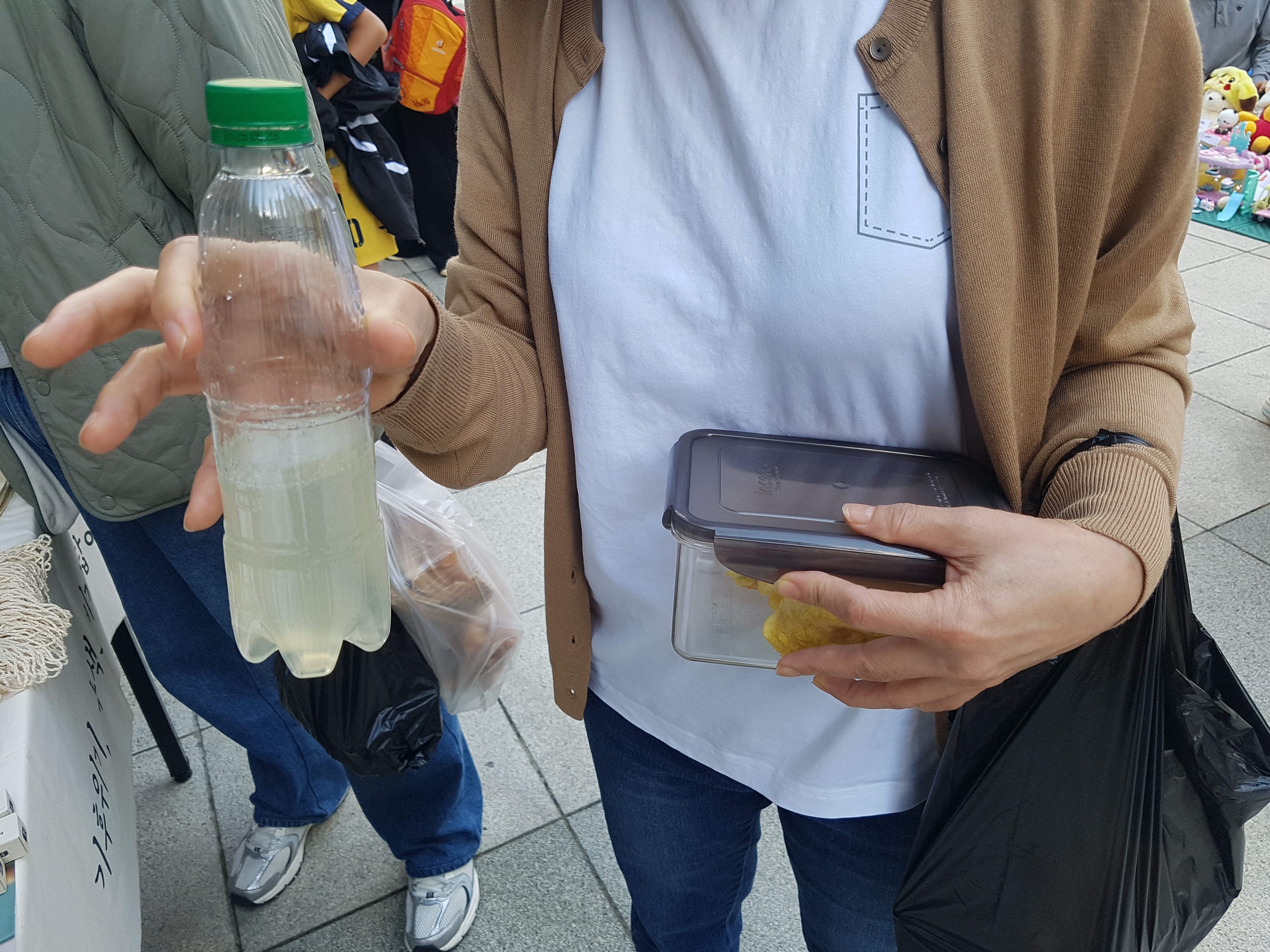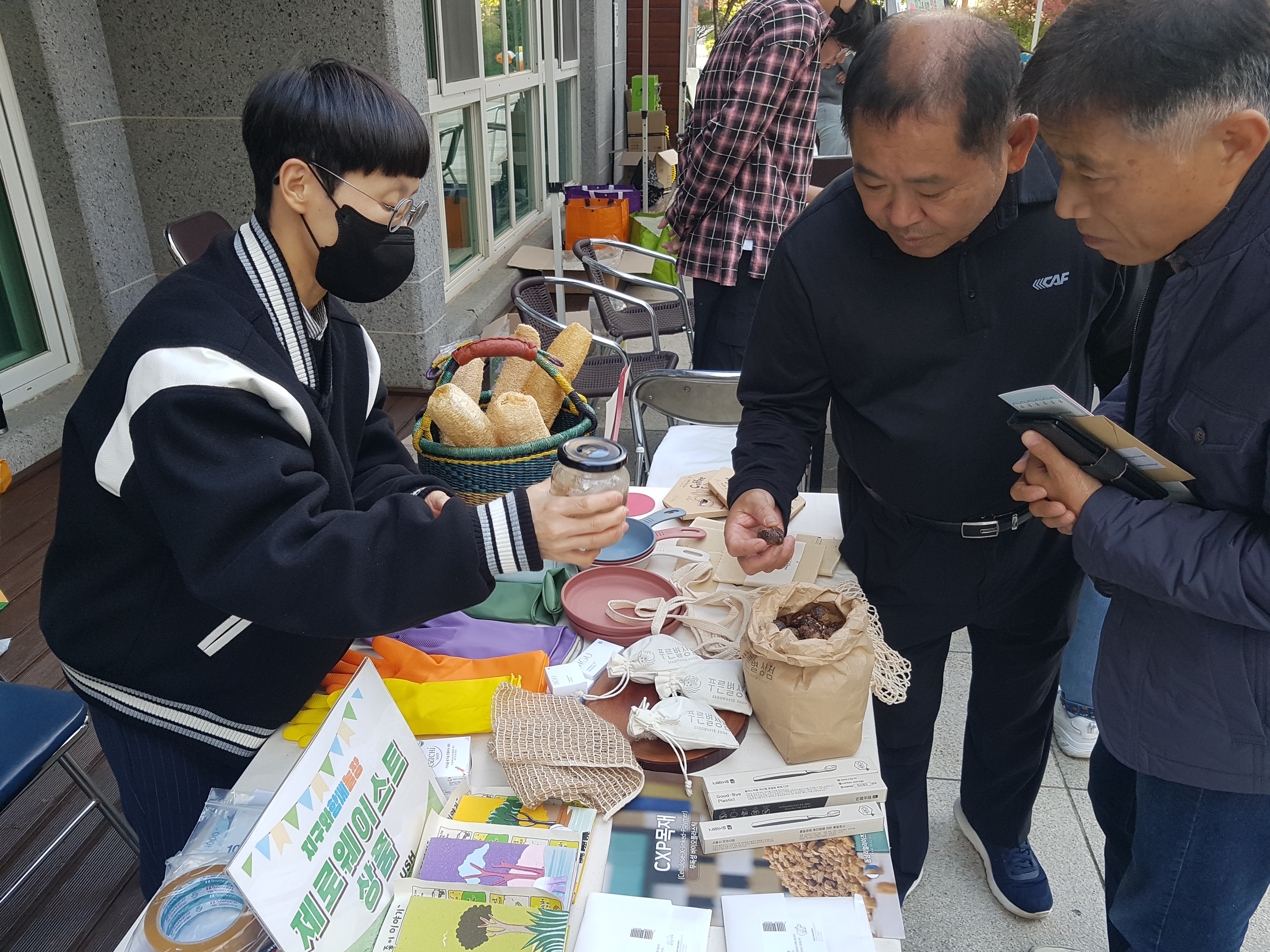 쓰레기 없는 장터이니만큼 모든 부스에서 일회용품을 사용하지 않았습니다. 먹거리 부스에서 다회용기에 음식을 담아오는 분들께는 친환경 주방세제도 나눔했습니다. 환경도 지키고 친환경 제품 사용도 해보고 일석이조 맞죠?