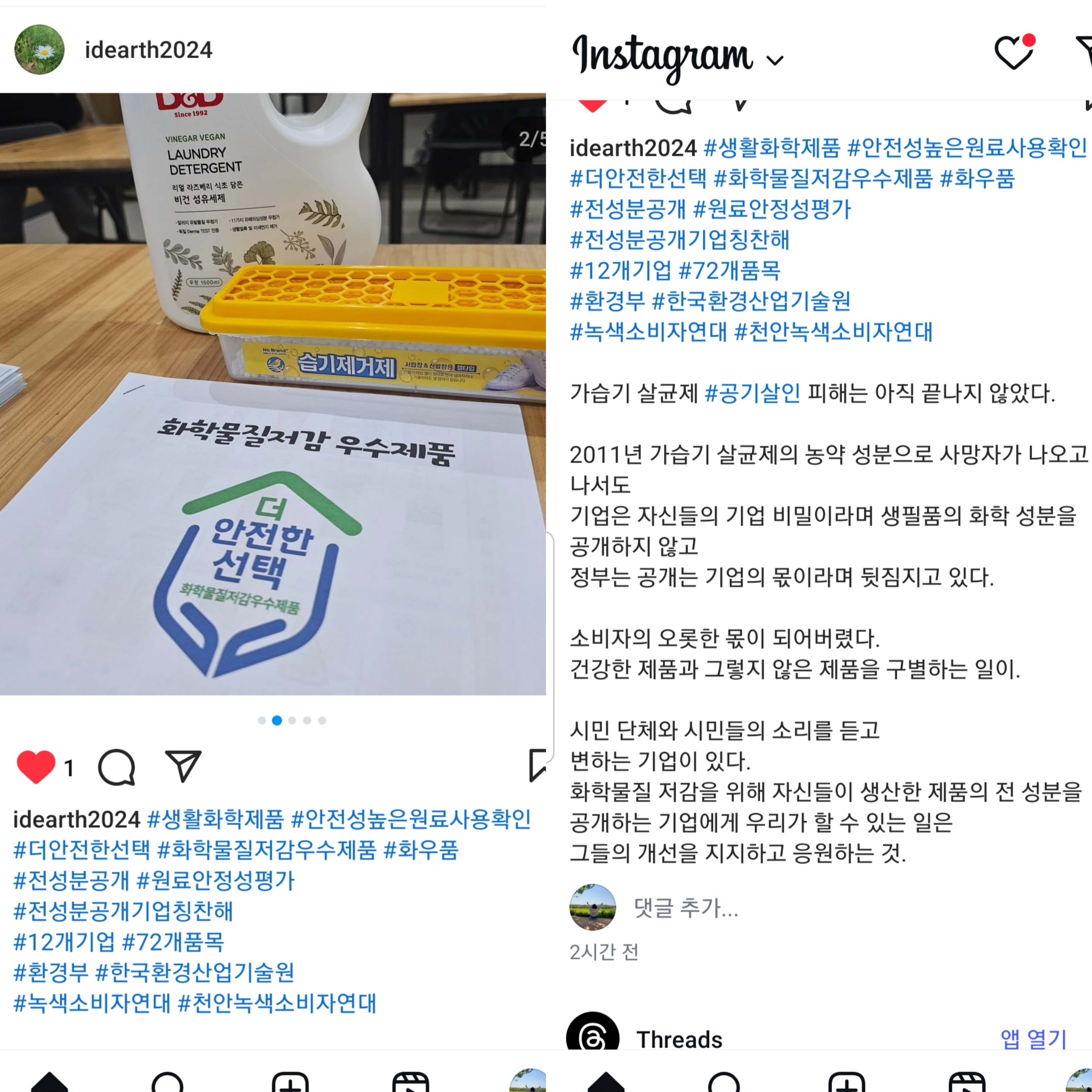 천안녹색소비자연대에서도 일명 <화우품> 체험단을 운영했습니다. 심사 제도에 대한 교육을 시작으로 화우품 선정 제품을 직접 사용해보았습니다.