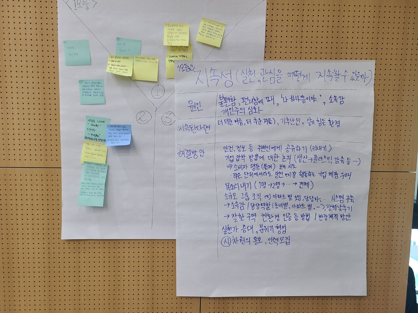 7개 그룹이 활발한 논의를 펼쳤고 따로 또 같이 함께 할 수 있는 다양한 아이디어들이 공유되었습니다. 무엇보다 기후위기 대응을 위한 실천에 ‘소속감’이 필요하다는 것에 공감이 모아졌습니다. 변화는 어렵고 지속은 더 어렵죠. 하지만 나만이 아니라 내 옆의 사람, 나아가 우리 공동체 모든 사람들이 함께 한다는 소속감은 실천의 동력이 되어줍니다.