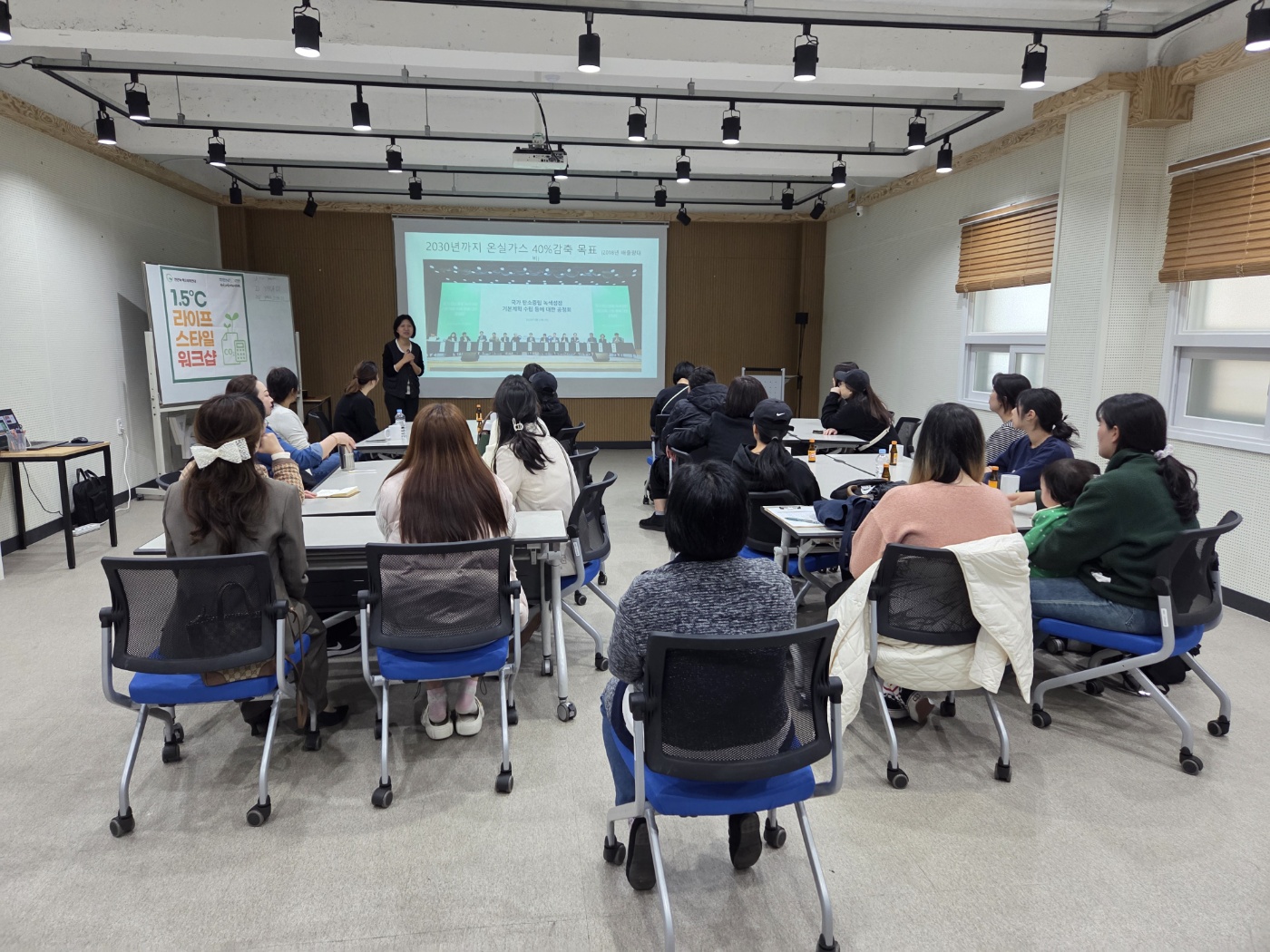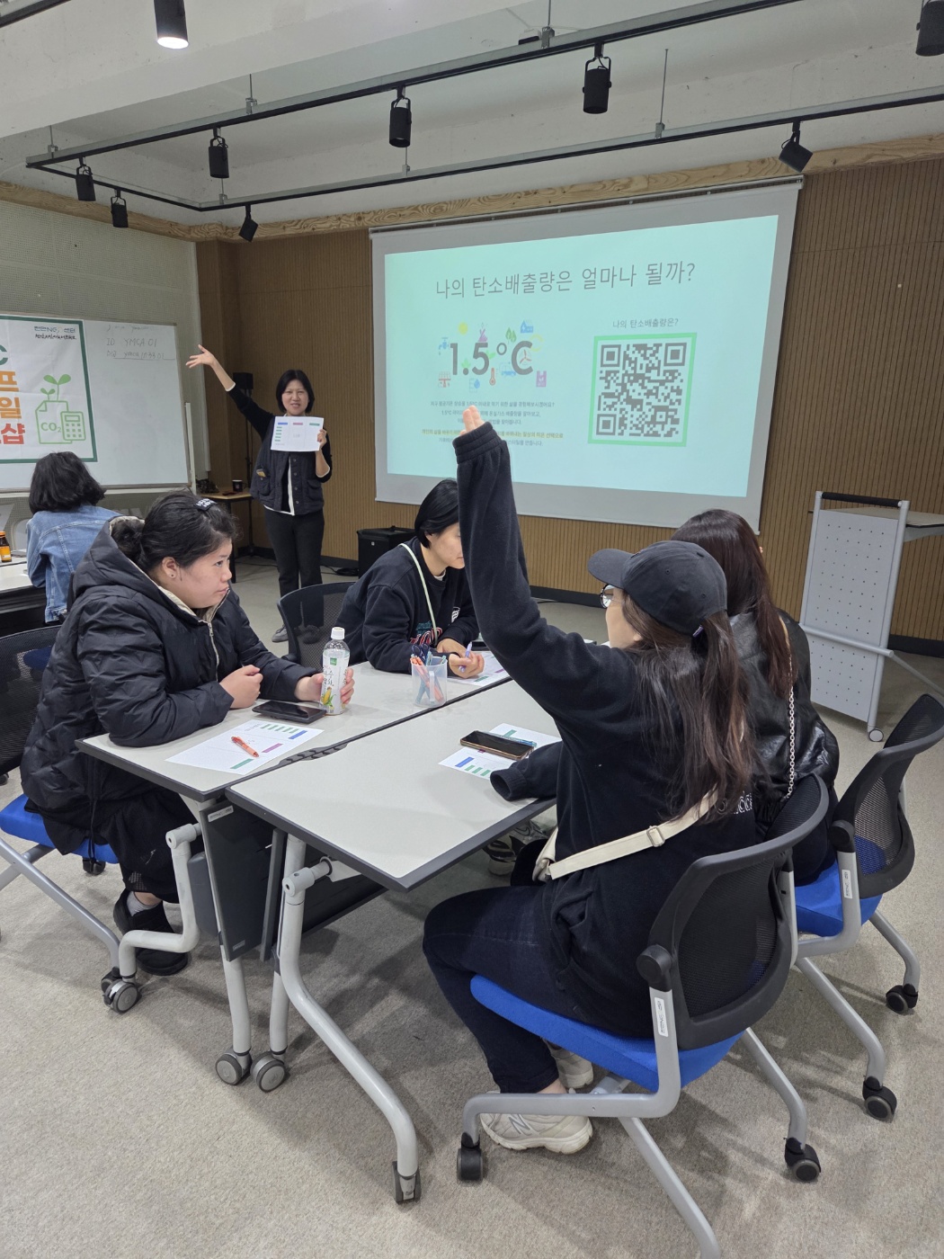 천안지역 어린이집 원장님 그리고 학부모님들로 이루어진 ‘지구별히어로’와 함께 1.5도 라이프 스타일 워크샵 진행했습니다. 내 일상 중 탄소배출이 가장 많은 영역은 무엇인지 1.5도 계산기를 통해 알아보고 탄소배출을 줄이기 위해 개인과 정책이 할 수 있는 일에 대해서도 고민해보는 시간을 가졌습니다.