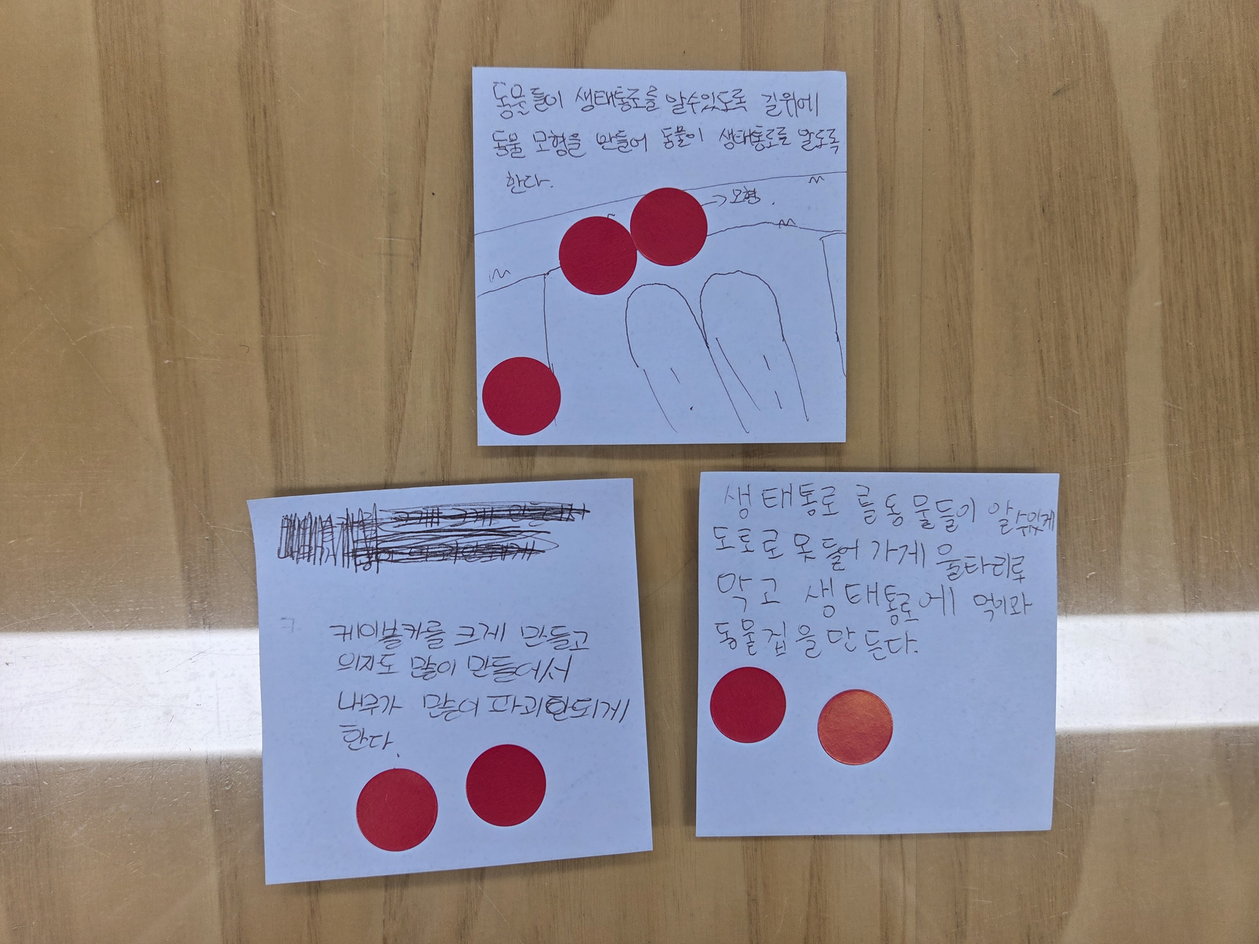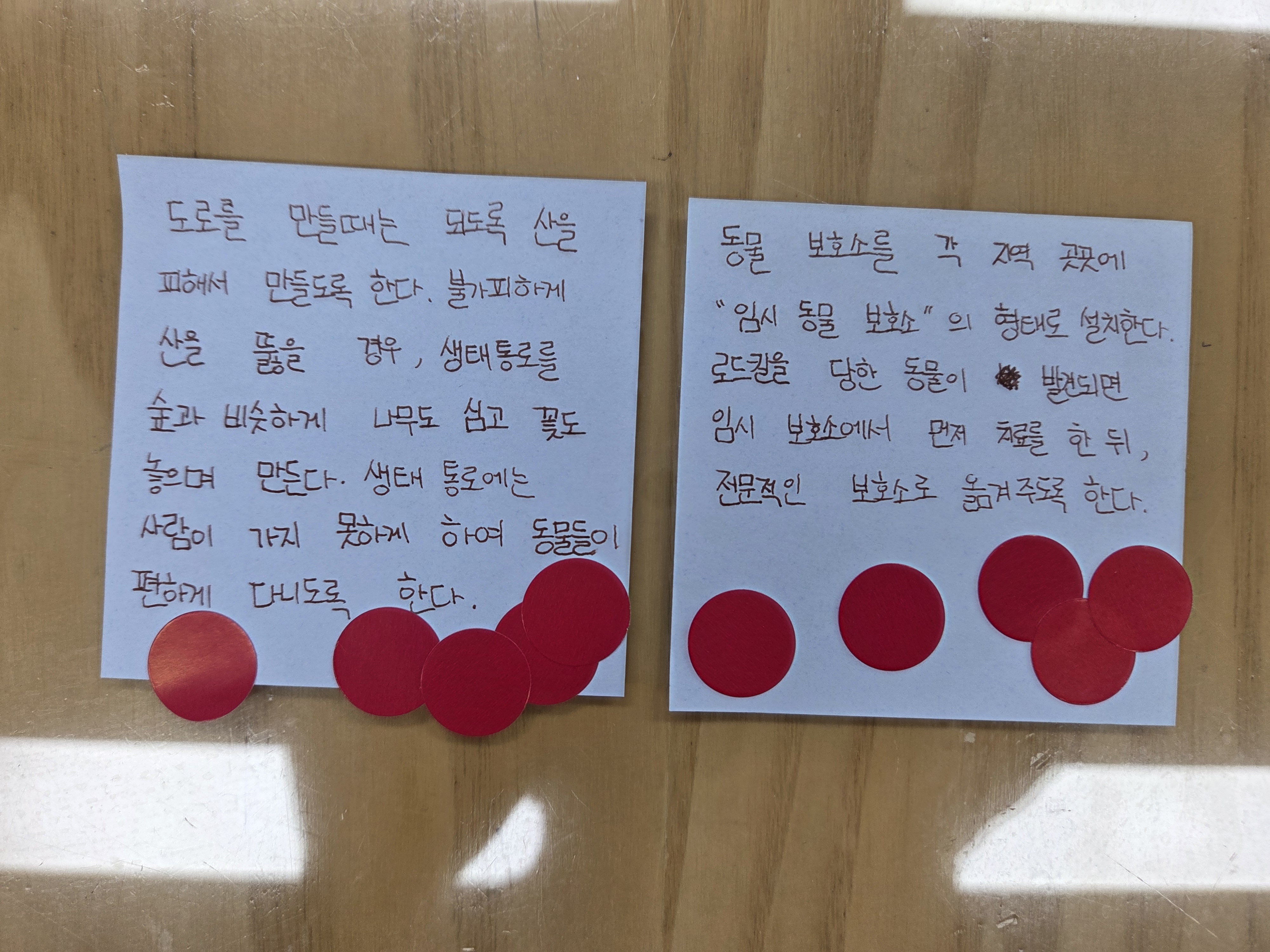 그리고 각자 필요하다고 생각하는 녹색헌법 조항에 대해 포스트잇에 작성한 후 투표를 진행하였습니다.