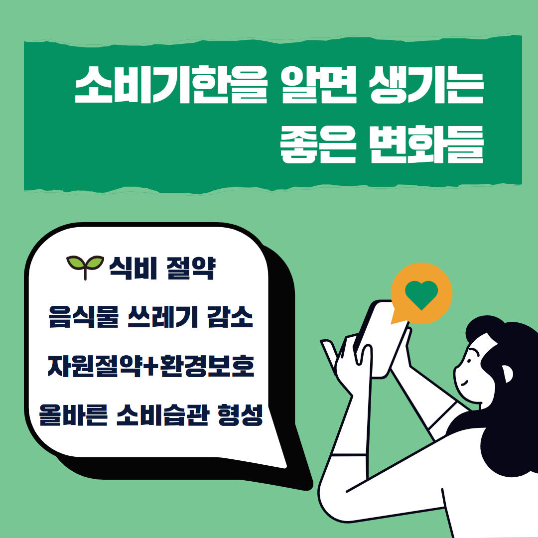 소비기한을 잘 확인해서 버려지는 식품이 없도록 우리 함께 노력하면 좋겠습니다.