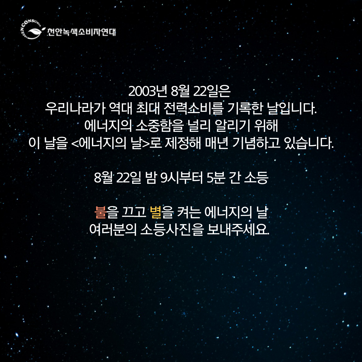 전국에 있는 모든 녹색소비자연대 회원들도 제22회 에너지의 날 소등행사에 함께 합니다!