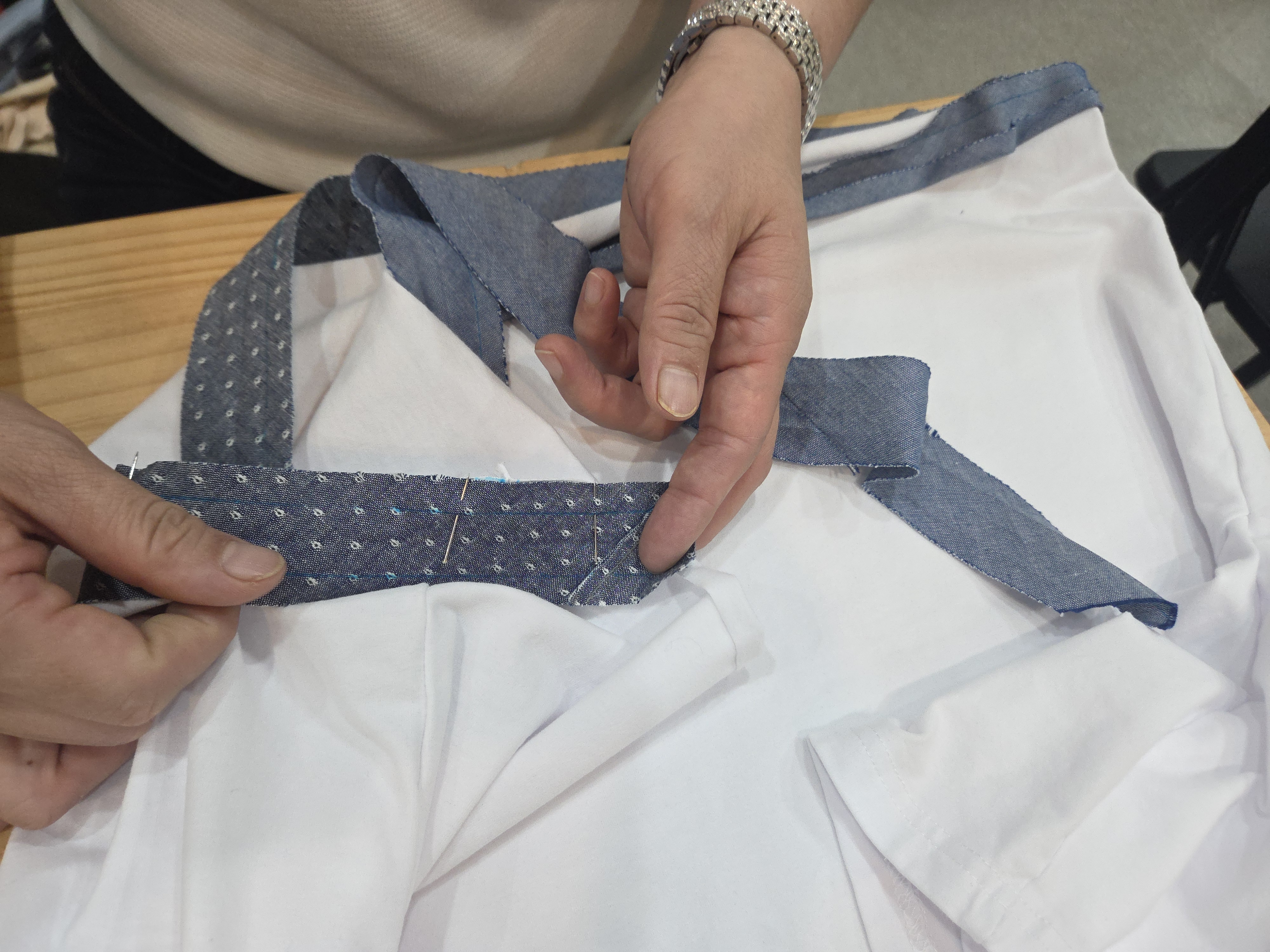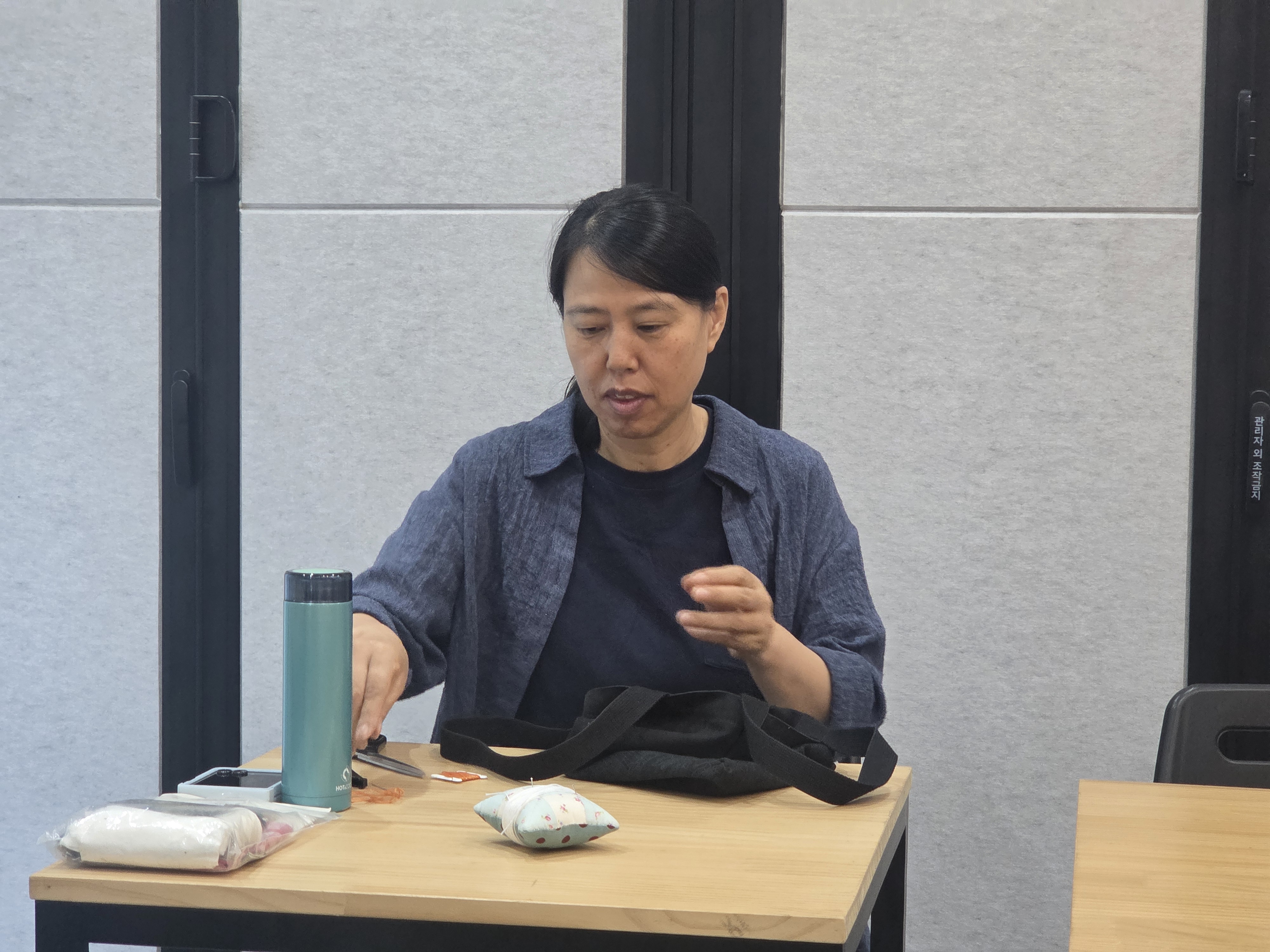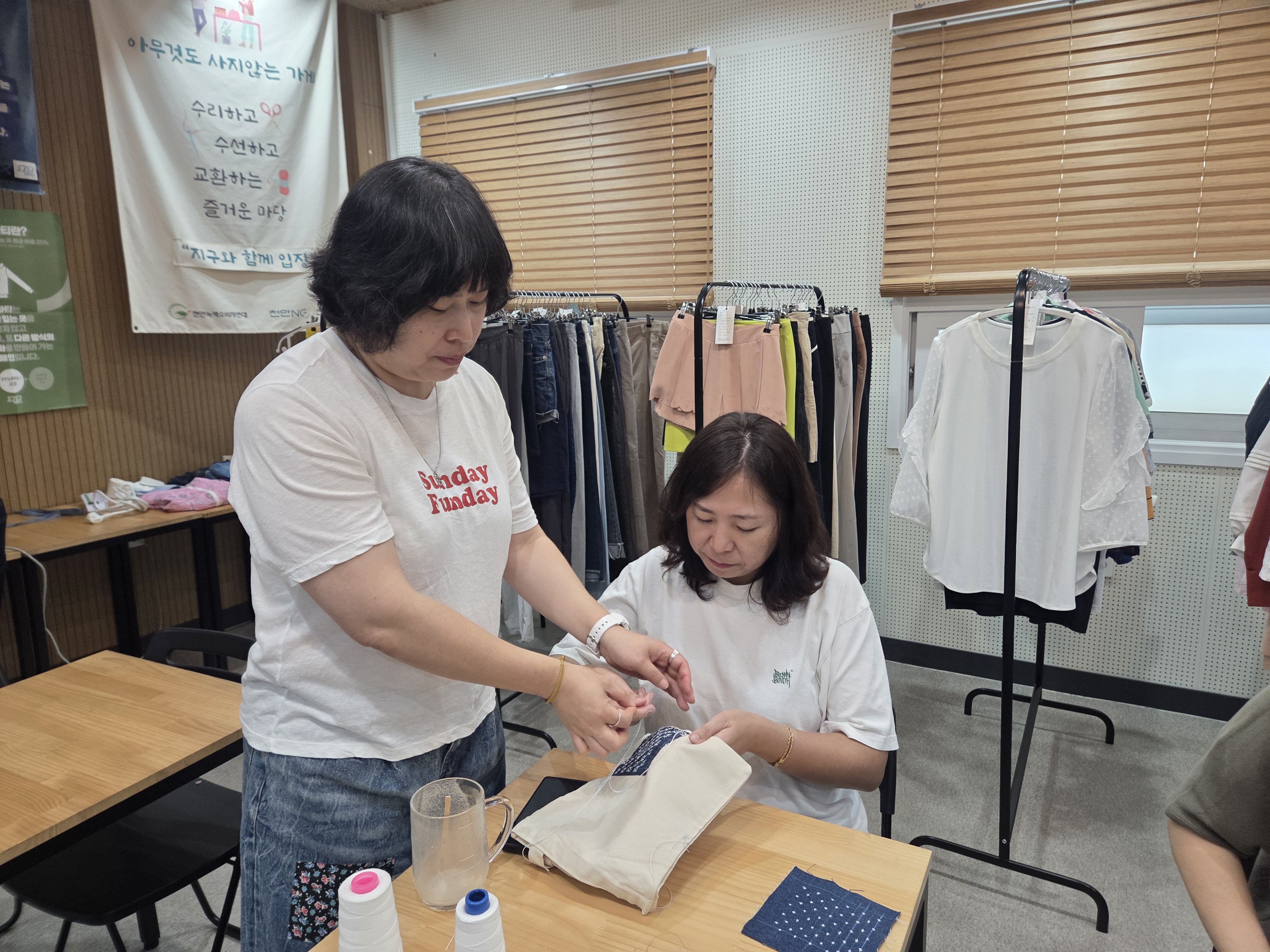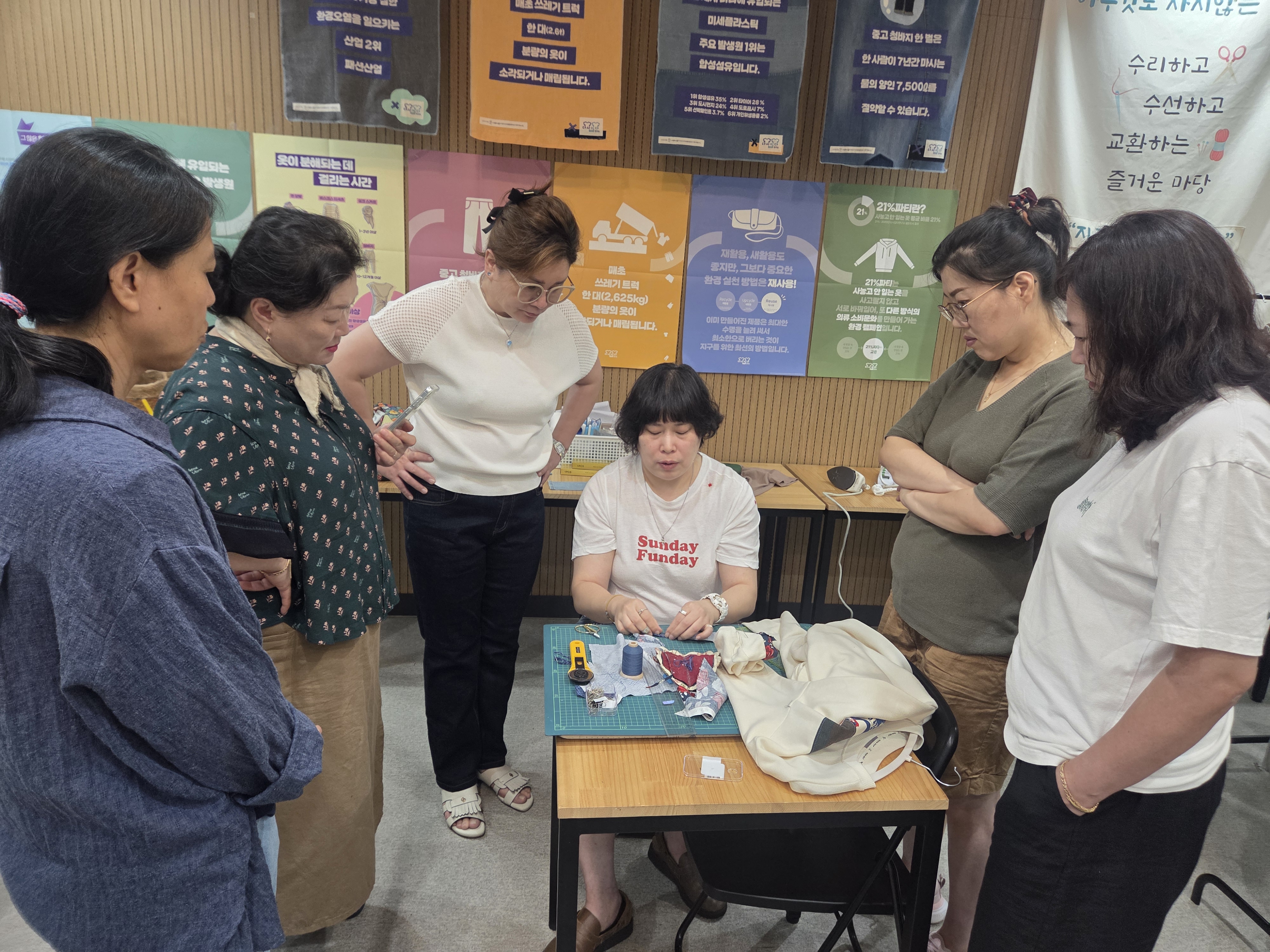 공예수선교실 제6강 '소매수선', 오늘은 조각 원단으로 낡은 소매를 수선하는 것과 청바지 등 바지단 줄이기를 진행하였습니다.