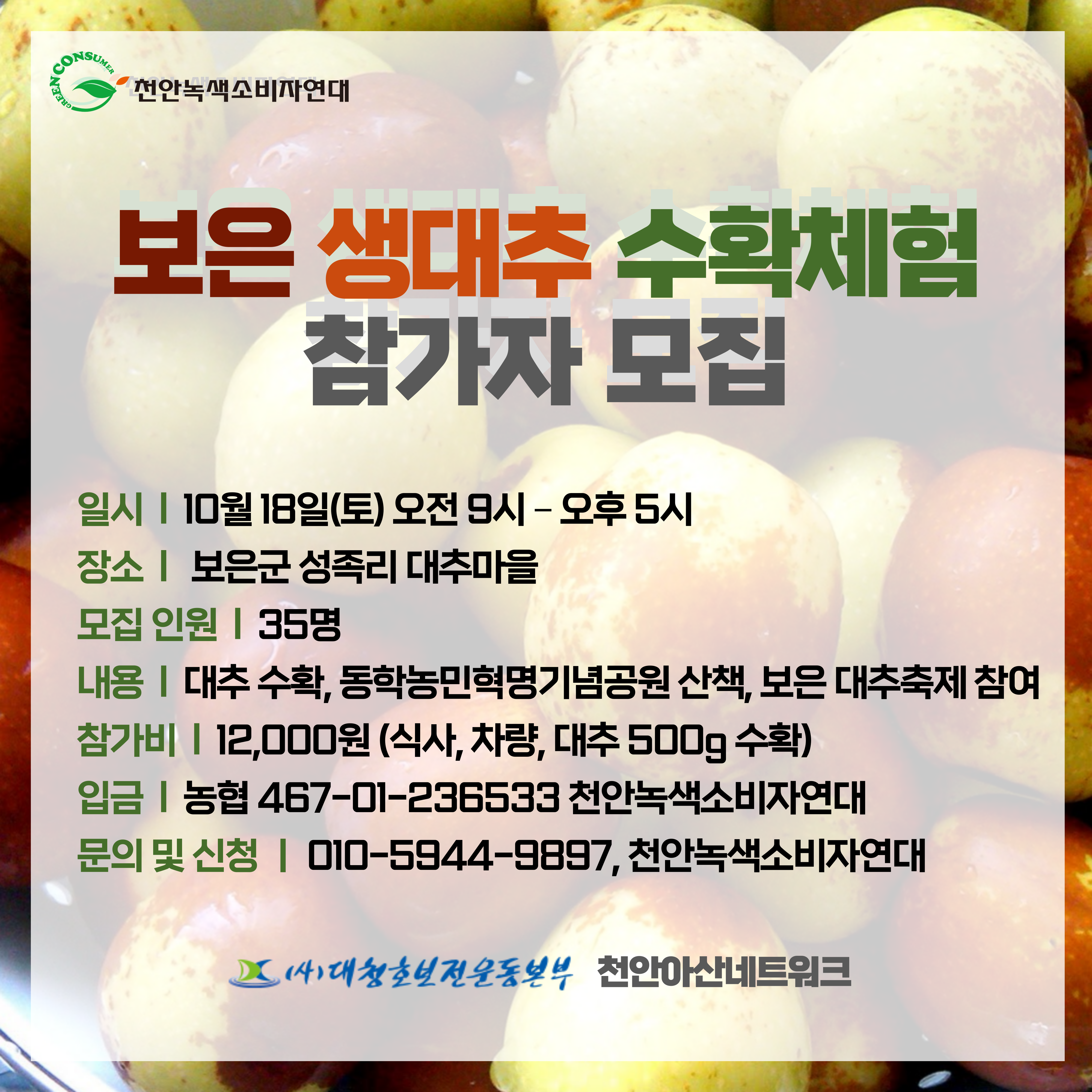 가을볕 좋은 보은으로 대추 수확 함께 가요!