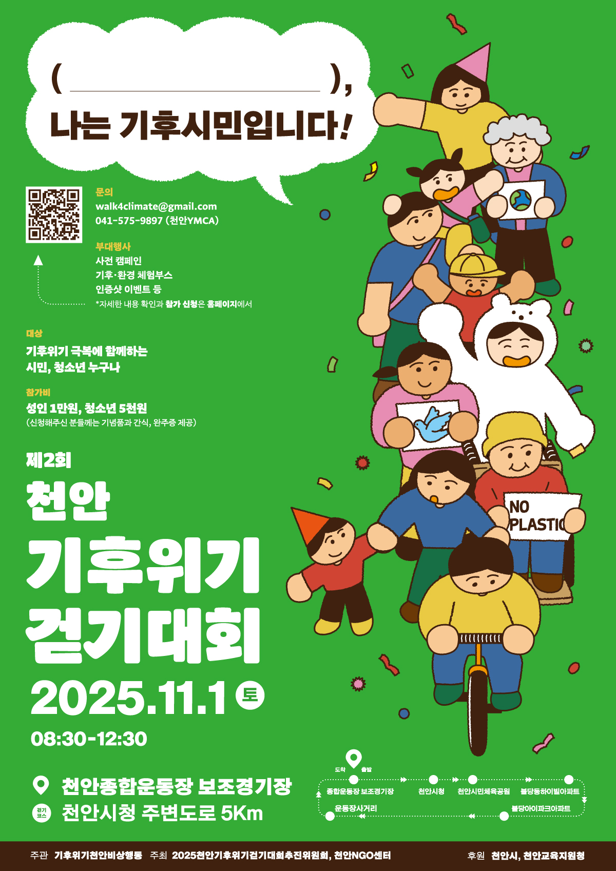 해가 갈수록 폭염과 폭우는 더 사나워지고 수 많은 사람들이 고통에 시달리거나 목숨을 잃습니다. 극심해지는 이상기후는 누구나 똑같이 겪지만, 기후재난은 차별적으로 불평등하게 다가옵니다. 함께 걷는 우리의 걸음은 개인과 국가, 지역사회의 변화를 위한 의지의 표현이며, 변화를 만들고 희망을 공유하는 기후시민들의 유쾌한 행동입니다.