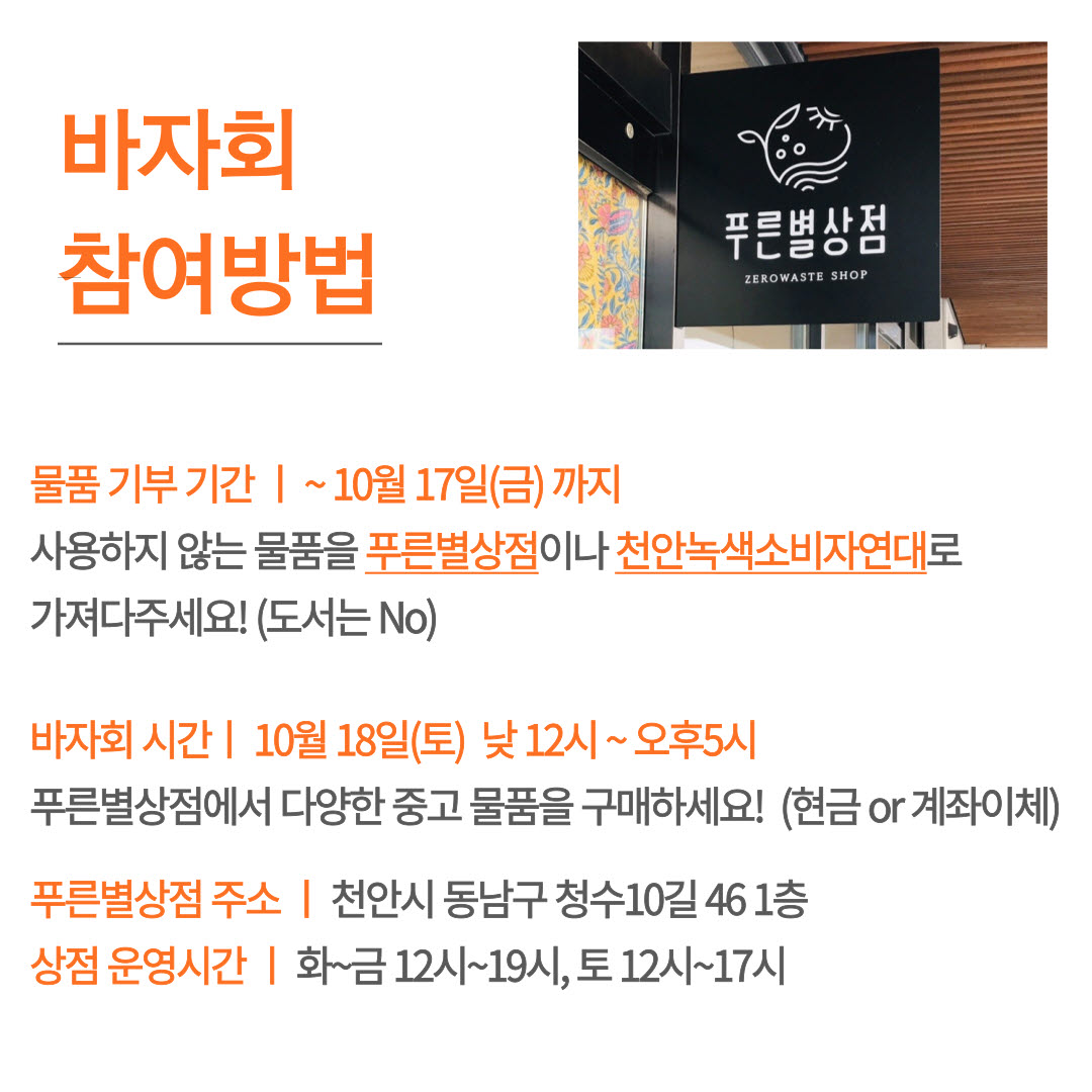 봄에 이어 가을에 어김없이 찾아오는 푸른별상정과 함께 하는 순환바자회!!