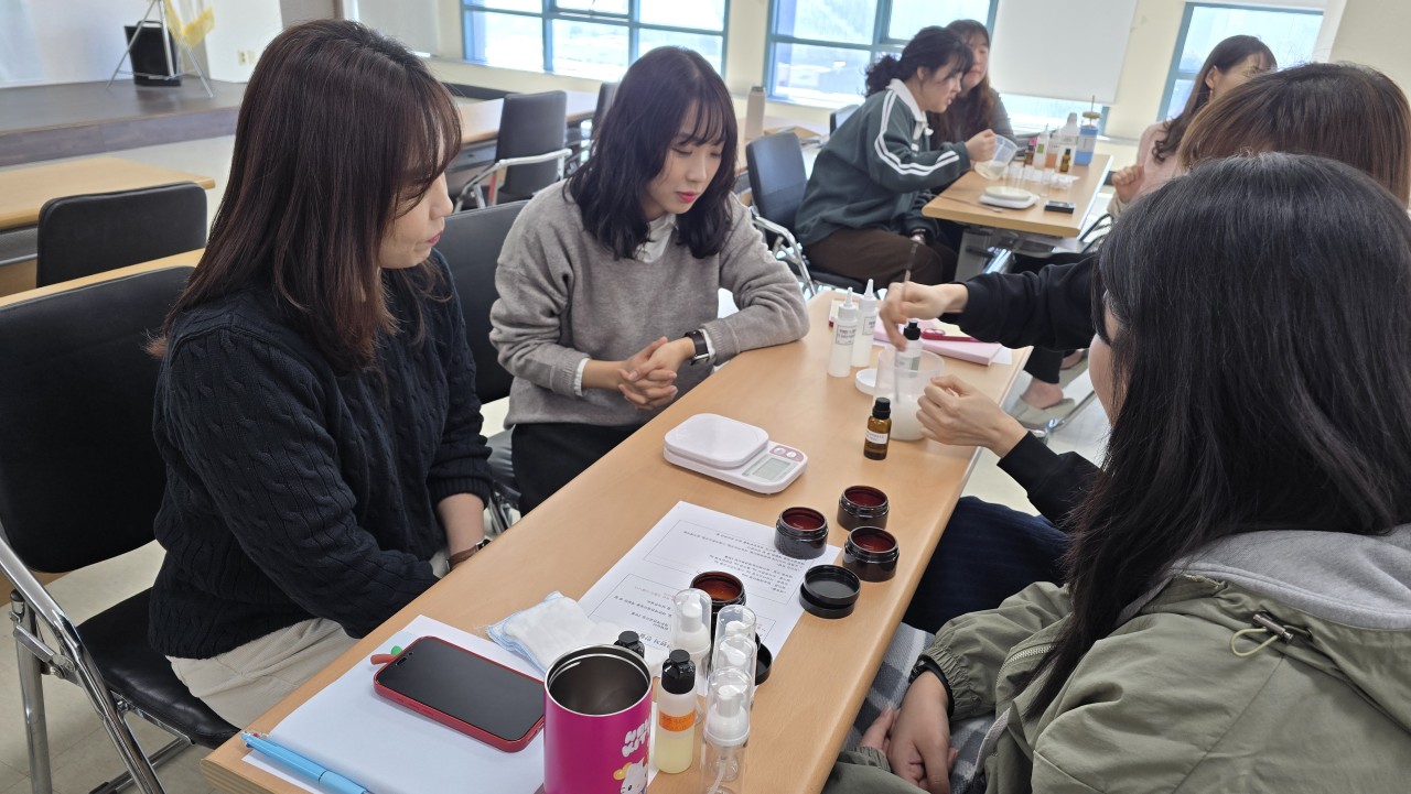 체험활동으로는 유칼립투스를 활용한 섬유 탈취제 만들기, 물 오염을 감소시키는 천연계면활성제를 활용한 폼 클렌저 만들기, 식물성오일로 수분크림 만들기 등을 함께 진행하면서 생활 속에서 녹색소비를 실천하기로 다짐하였습니다.