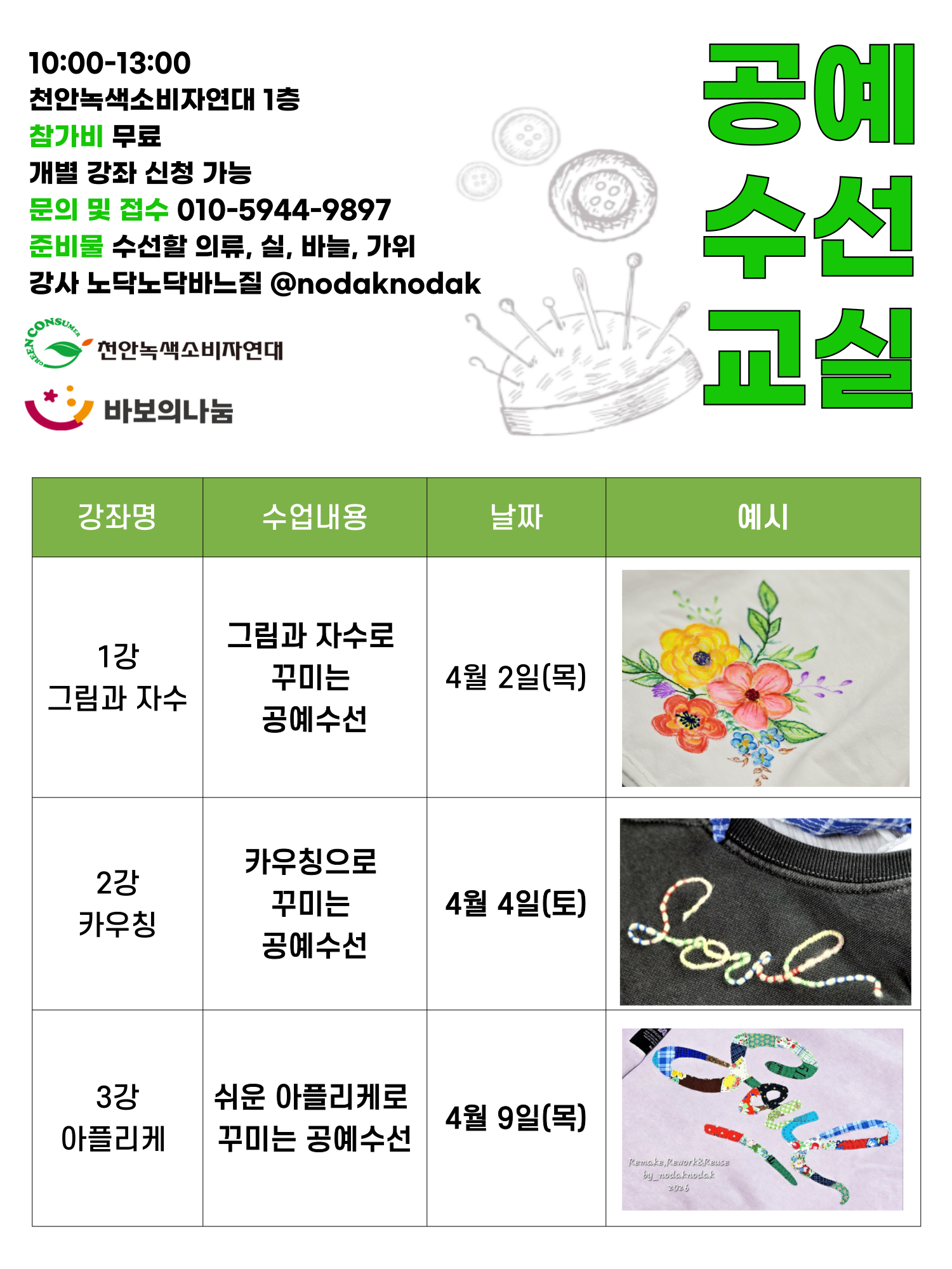 옷 쓰레기는 없다, 공예수선교실이 열려요!