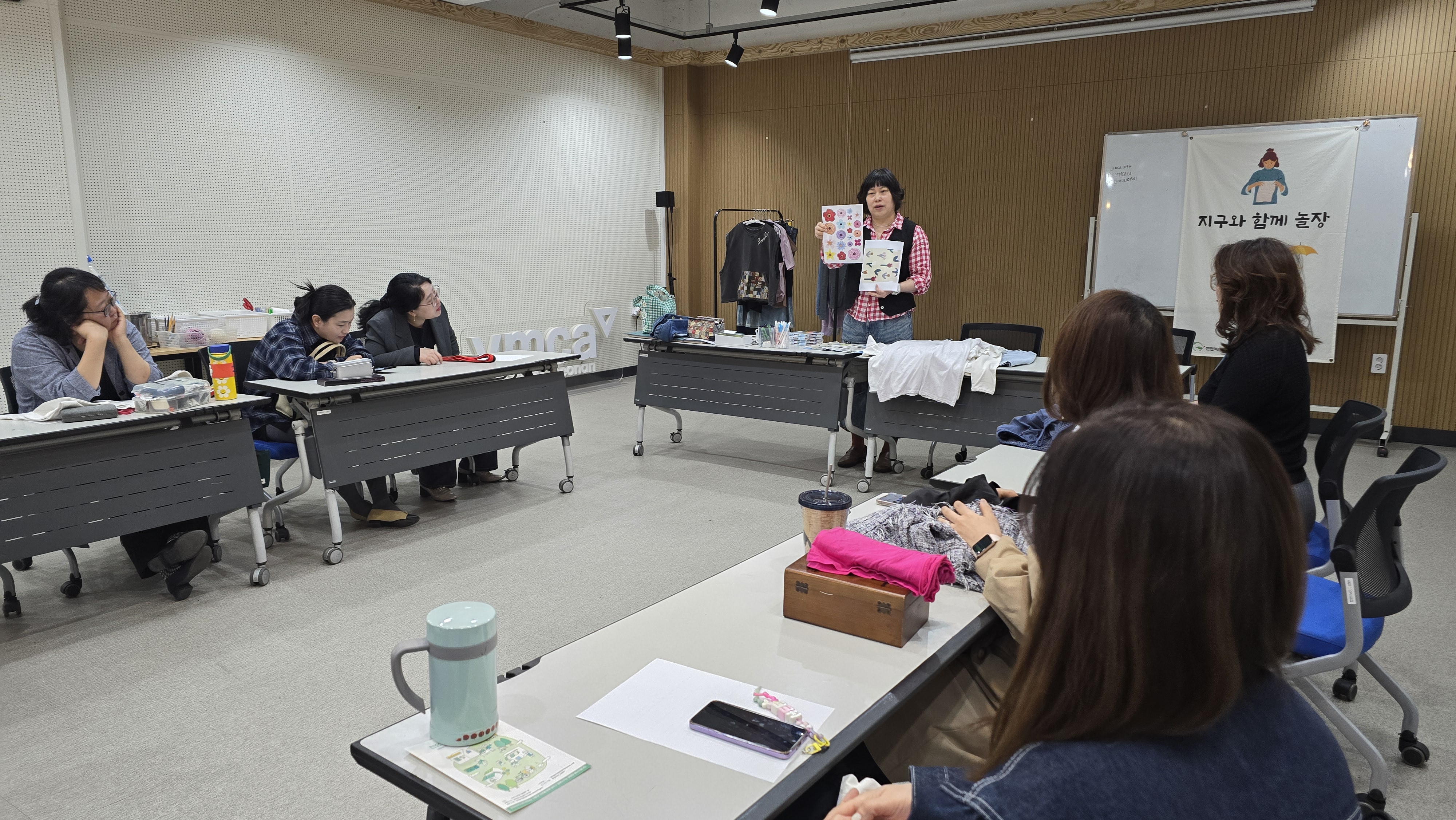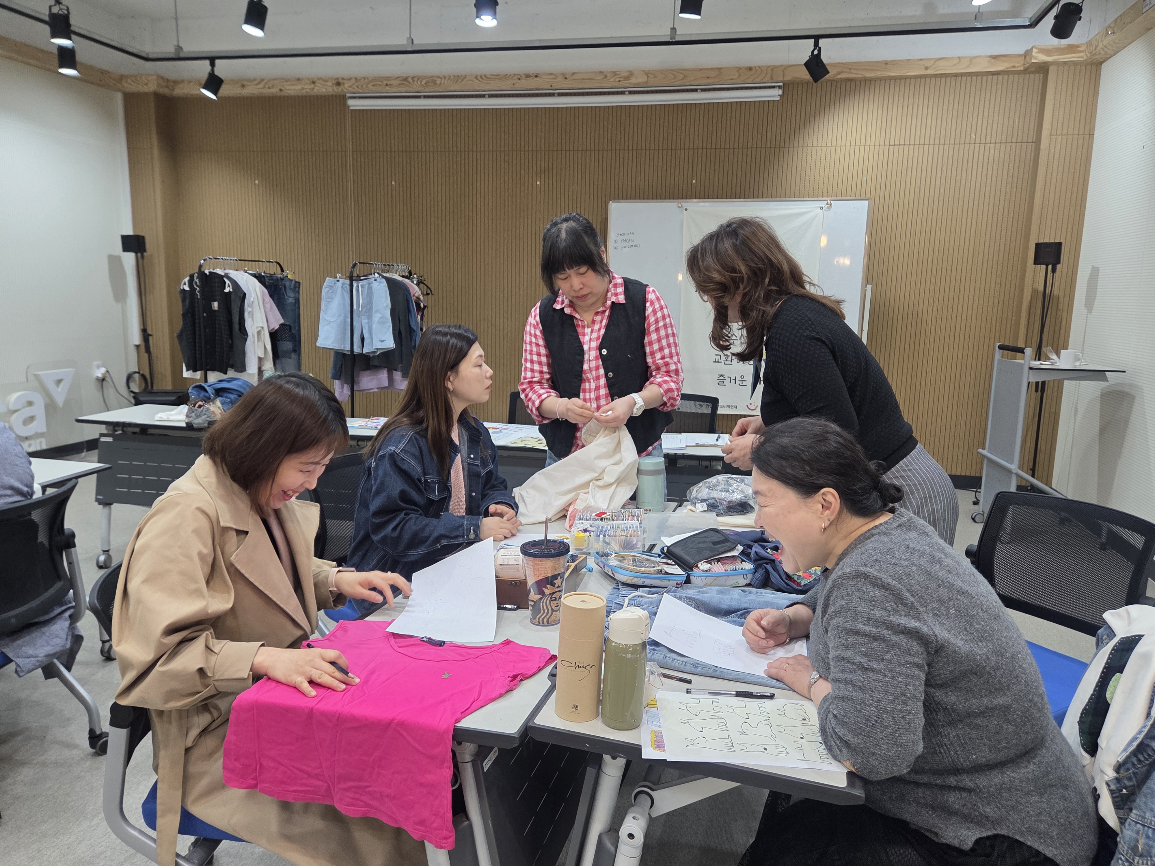 옷 쓰레기도 줄이고 나만의 개성을 담아 옷을 즐겁게 오래입기 위한 공예수선교실, 오늘은 제1강 '그림과 간단자수로 옷 꾸미기'를 진행하였습니다.