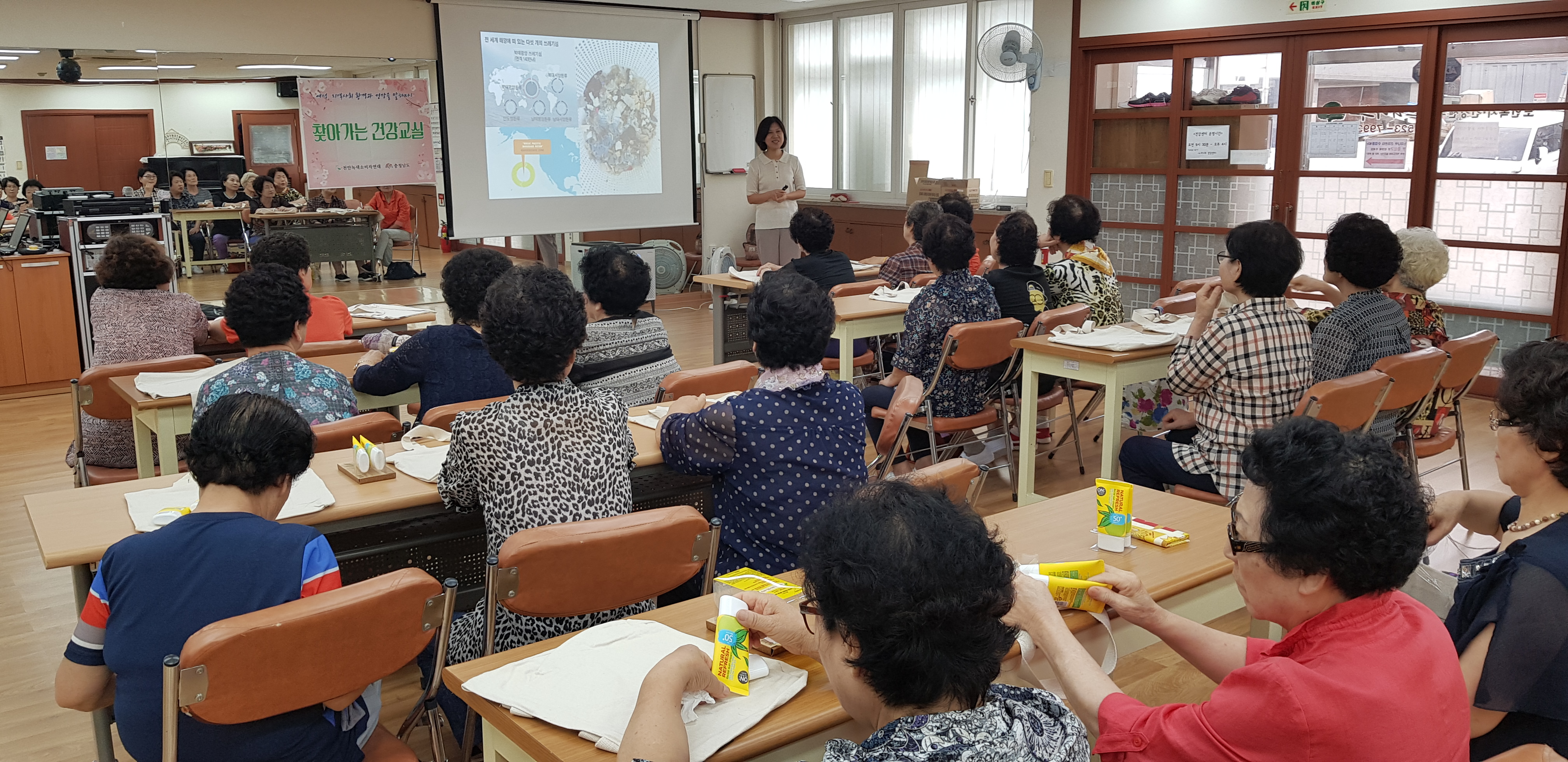 느티나무건강센터에서 어른신들과 자원순환과 폐기물 교육 진행했습니다.