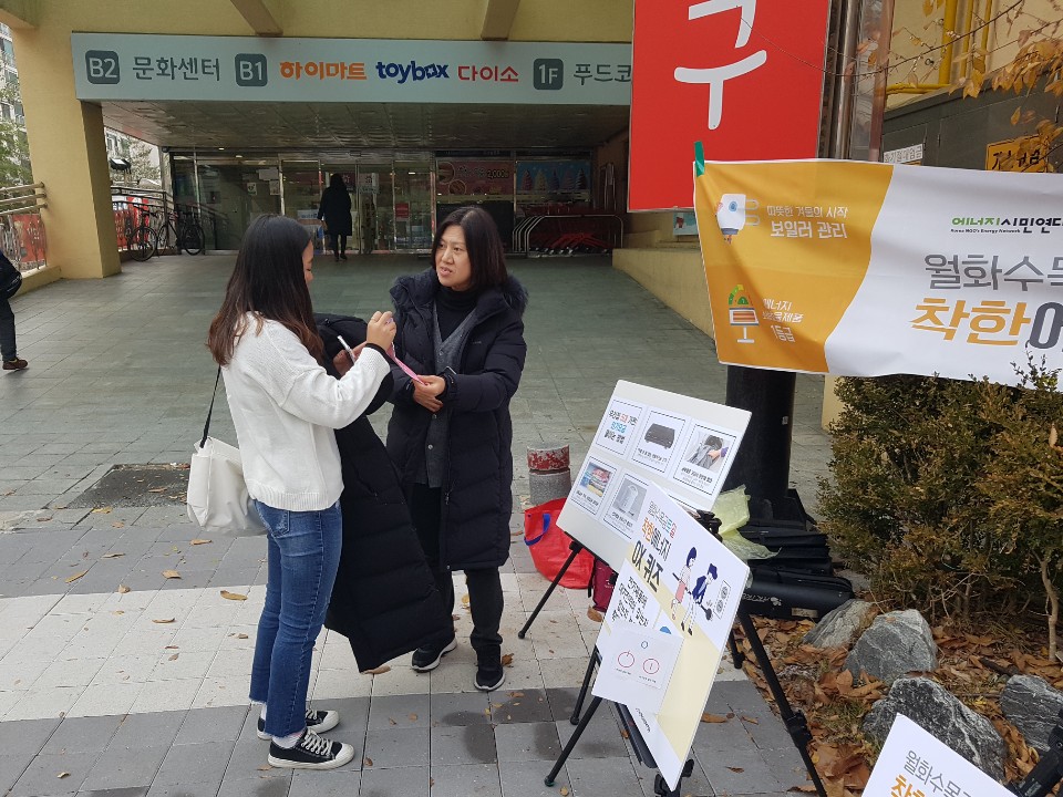 보일러 배관 청소로 난방효율을 높이는 방법을 비롯해 에너지 OX퀴즈를 통해 겨울철 난방에너지 절약 정보를 홍보했습니다. 기념품으로는 보온 물주머니를 나누어드렸습니다. 날씨가 많이 추워졌습니다. 조금만 신경써도 가정의 에너지 사용량에는 많은 변화가 있습니다. 녹소연의 팁과 함께 따뜻하고 건강한 겨울 보내시기를 바랍니다.