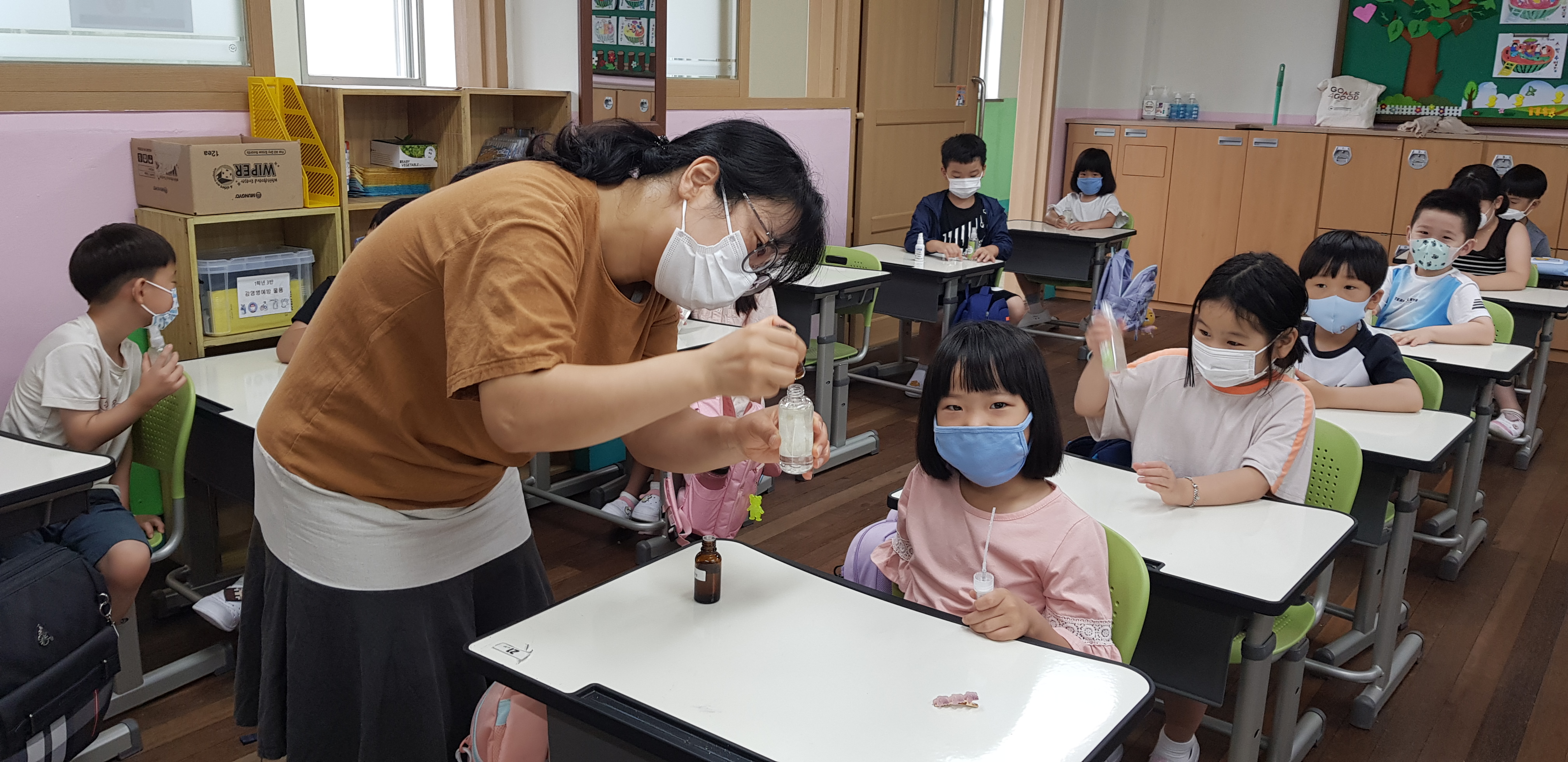 월요일에 이어 오늘은 봉서초등학교 1학년 학생들을 대상으로 환경 교육 진행했습니다. 모기퇴치 스프레이, 손 세정제 만들기를 함께 했습니다. 습한 날씨 속에서 마스크를 쓰고 고생하신 솔나리 선생님들 감사합니다.