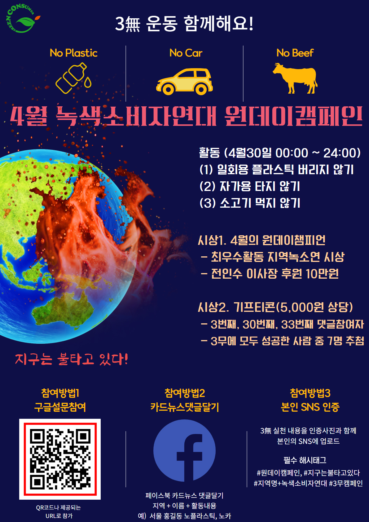 #원데이캠페인 #지구는불타고 있다 #천안녹색소비자연대 #3무캠페인