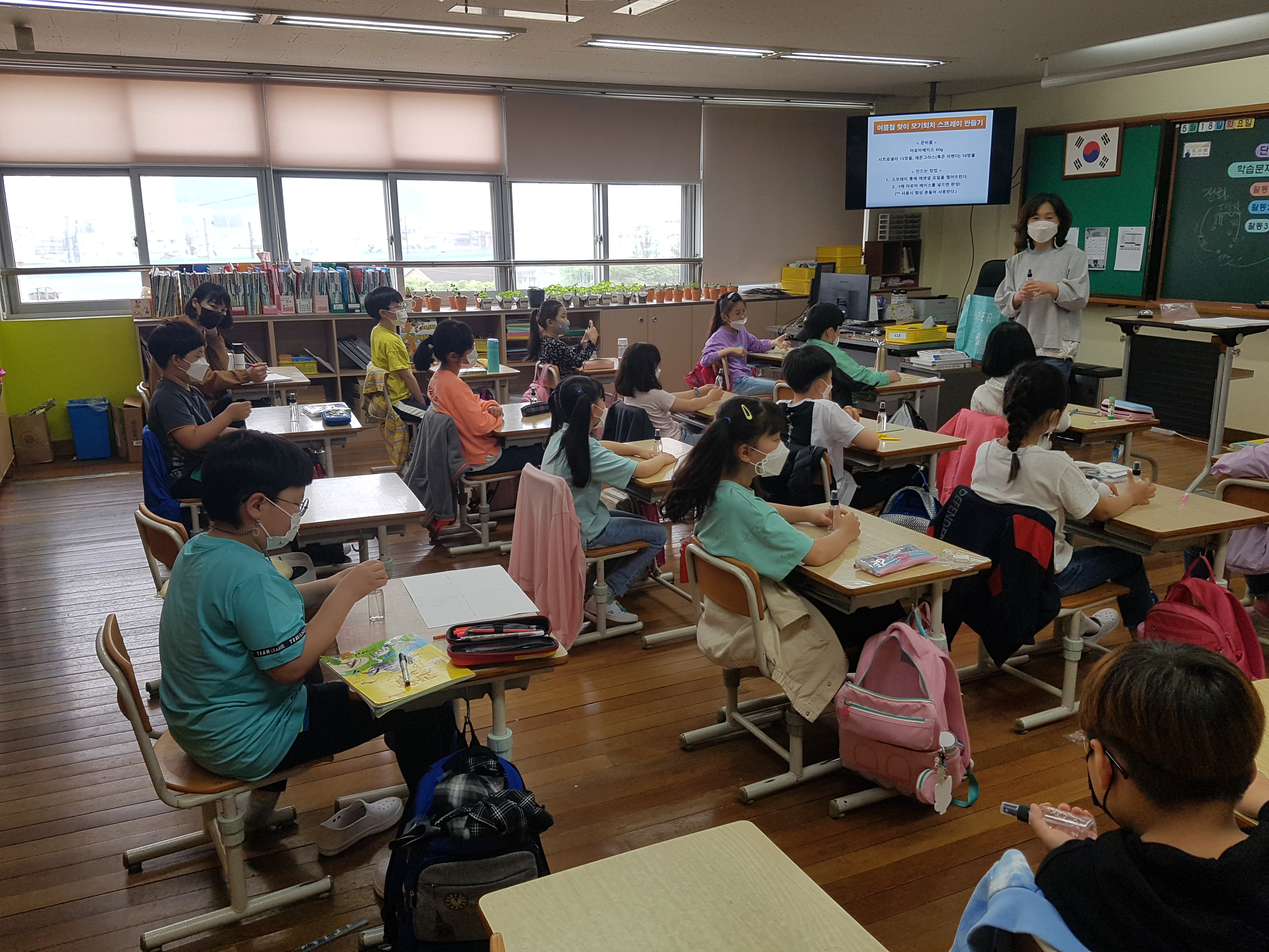 와촌초등학교와 함께 하는 어린이 에너지 전환 교육 마지막 시간 진행했습니다. 오늘은 기후변화와 떼려야 뗄 수 없는 물에 대해서 알아보았습니다.