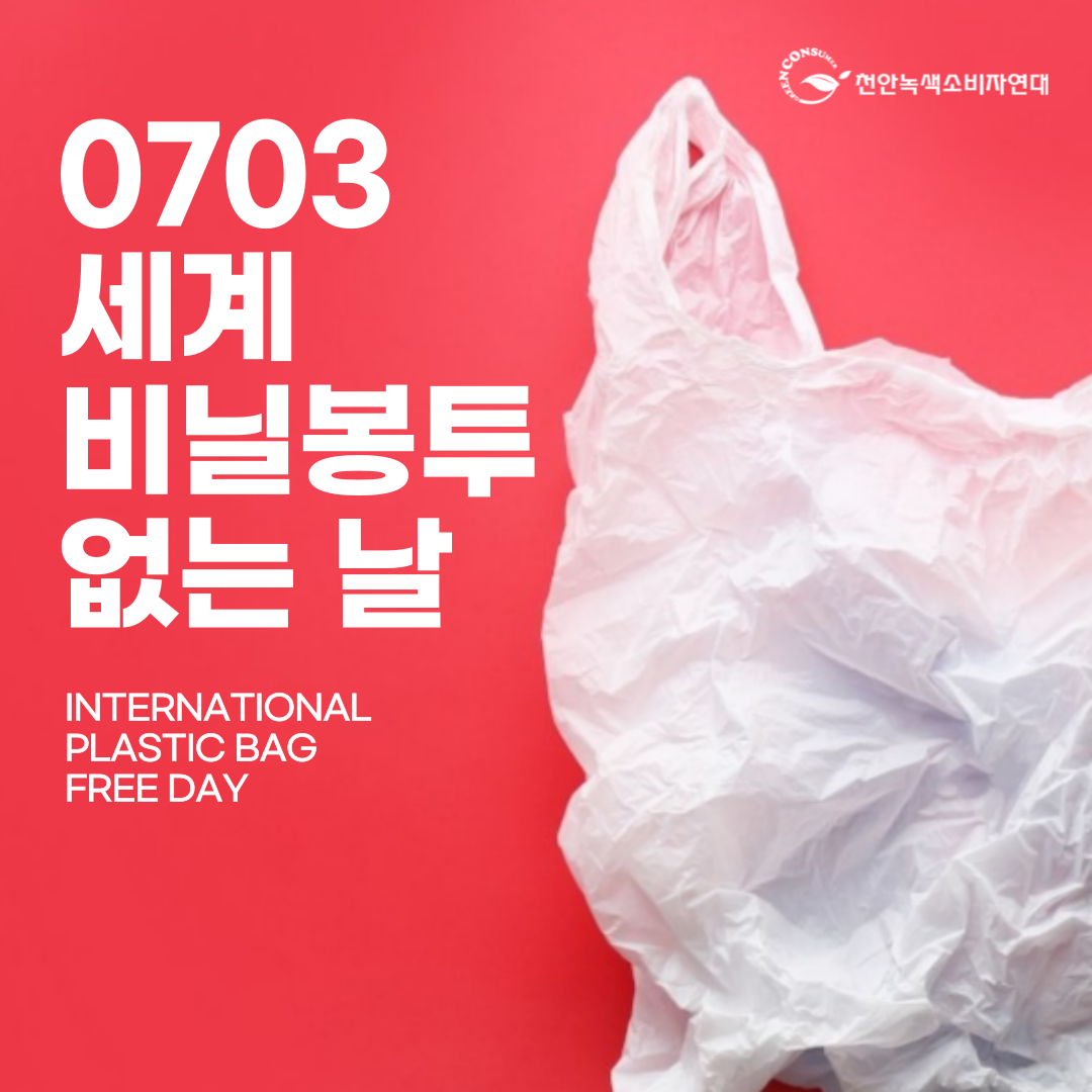 7월 3일인 오늘은 ‘세계 플라스틱 없는 날’입니다. 2008년 스페인의 국제환경단제 ‘가이아’가 제안해 만들어진 기념일입니다. 2015년 기준 한국의 1회용 비닐봉투 연간 사용량은 약 211억개. 억 소리 나는 비닐봉투로부터 자유로운 오늘 하루를 실천해주세요.