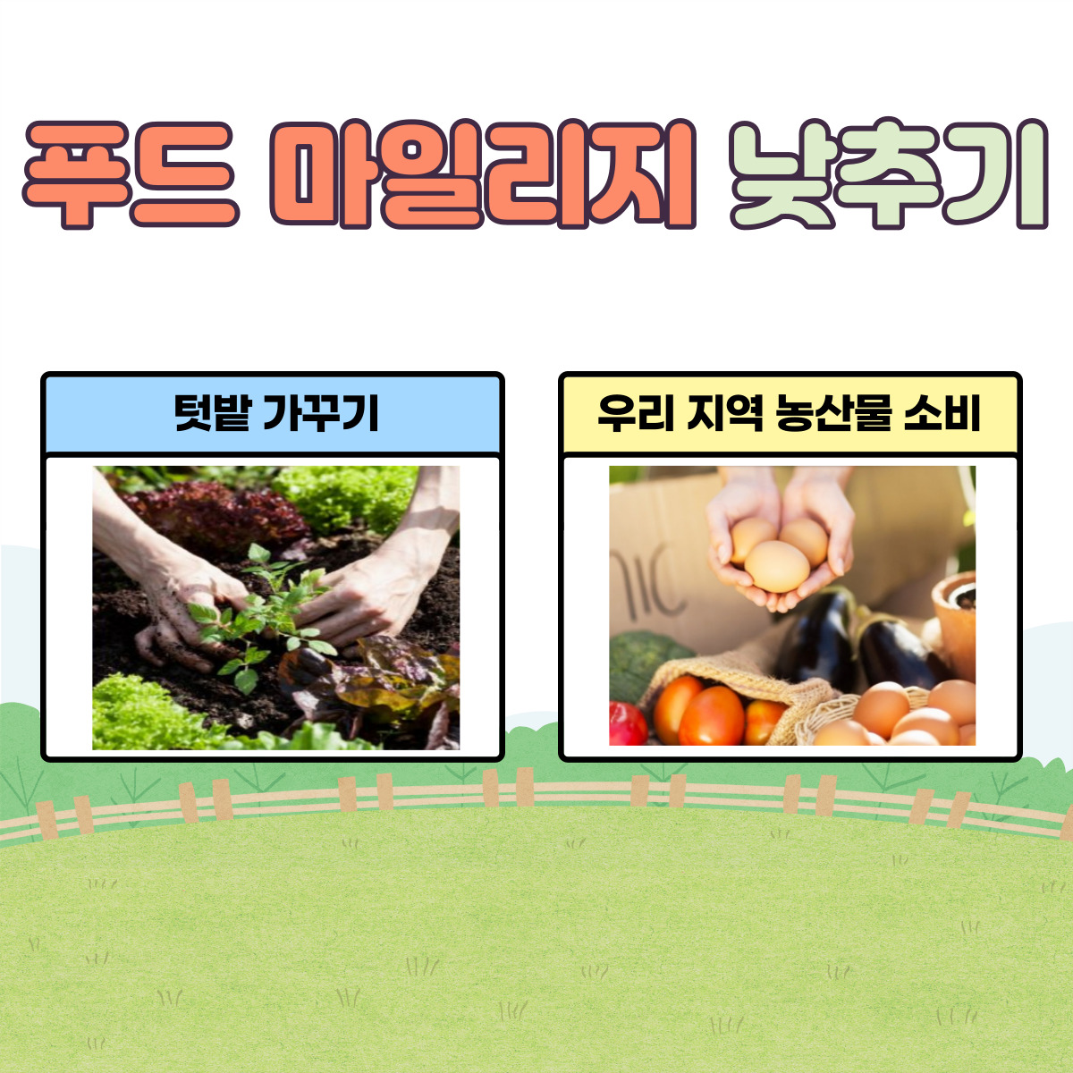 푸드 마일리지 낮추기-텃밭 가꾸기, 우리 지역 농산물 소비, 제출 농산물 먹기, 식품 구입시 인증마크 확인