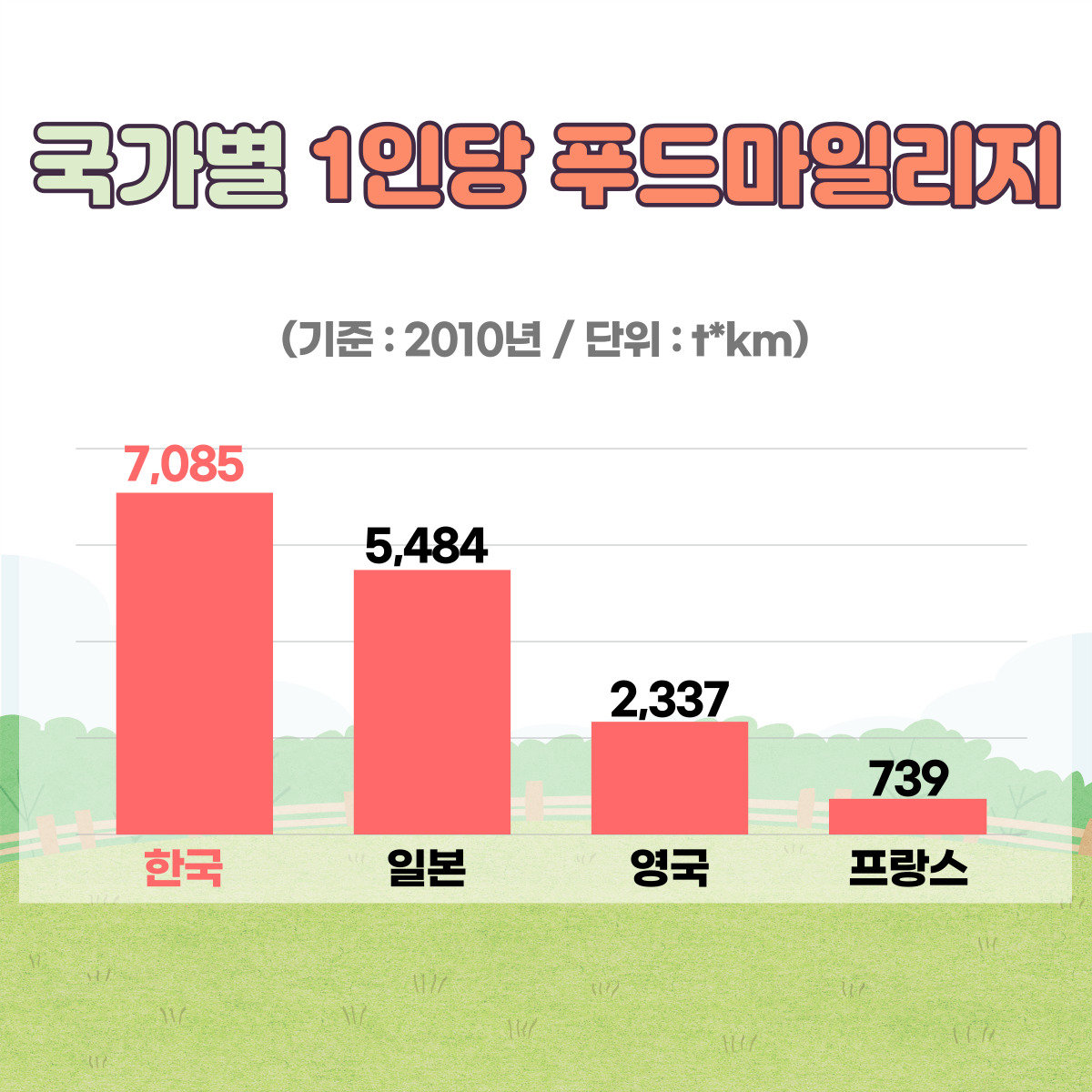 푸드 마일리지 계산 방법=식품 수송량(t) X 수송 거리(km)