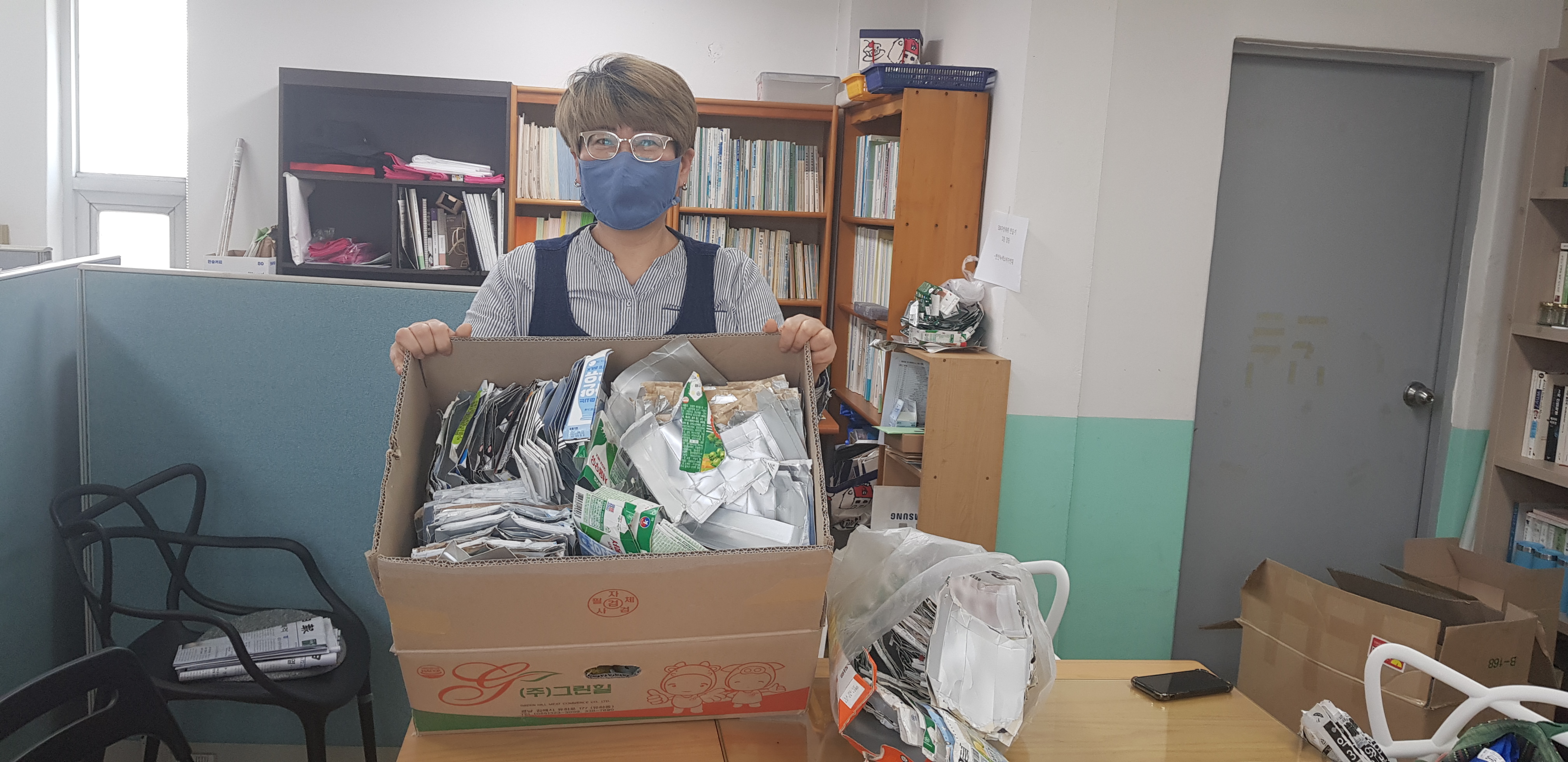 작년에 이어 올해도 제로웨이스트샵 푸른별상점이 종이팩과 아이스팩 자원순환 정거장 역할을 해주고 있습니다. 오늘 대표님께서 두 손 가득 멸균팩과 의류를 가져오셨습니다. 의류는 한 살림의 옷되살림 사업에 전해드릴 예정입니다.