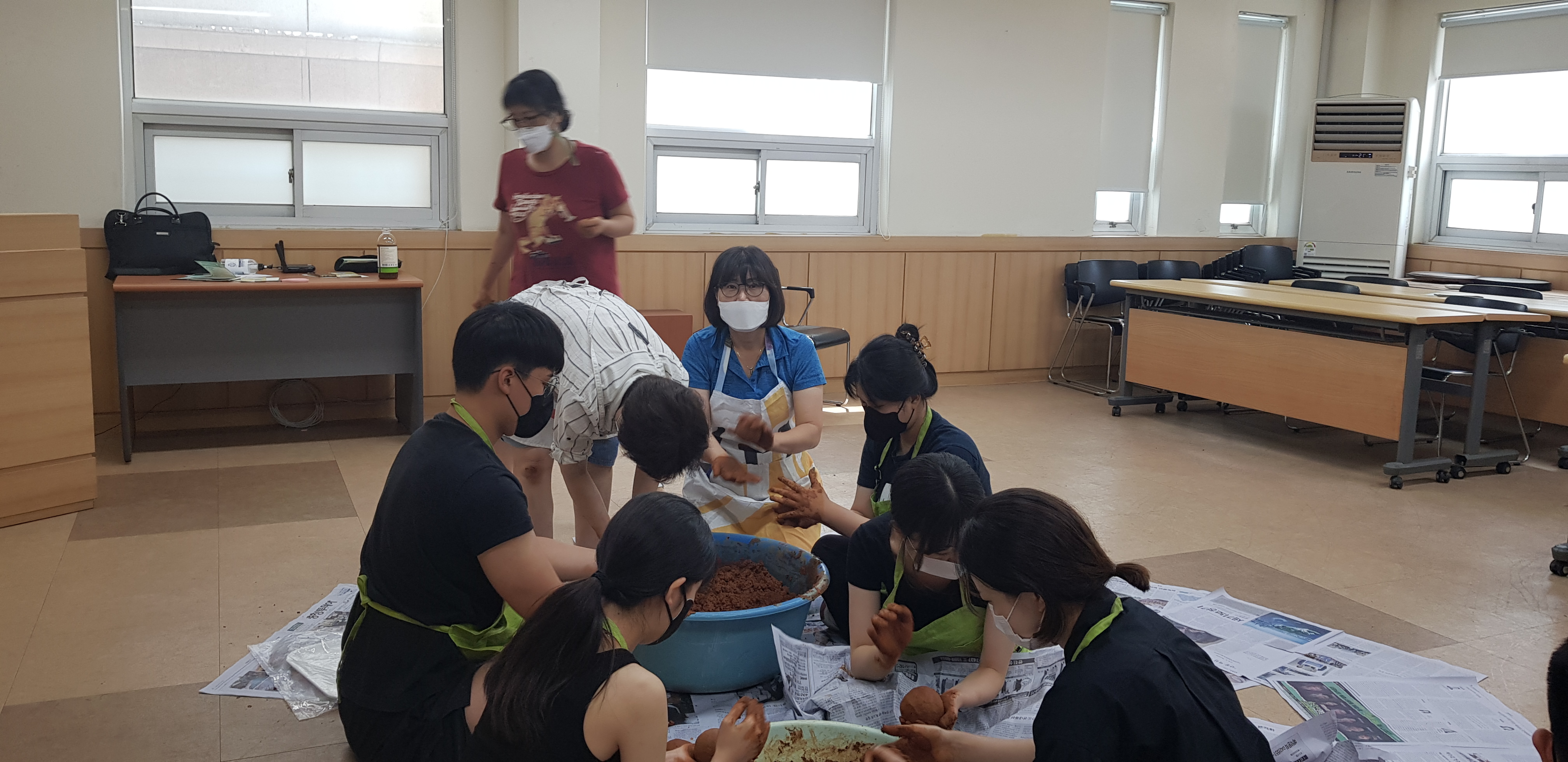 대학생들과 EM흙공 만들었습니다. 8월 초 하천 정화 캠페인에 사용할 예정인데 곰팡이가 잘 피기를