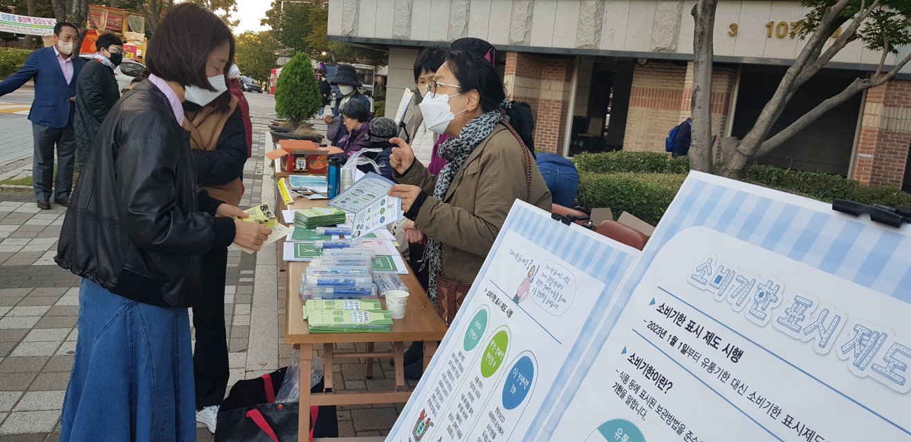 현재 식품의 경우 유통기한으로 표시되어 있는데요 2023년 1월 1일부터 소비기한으로 표시제도가 시행되어 이에 대한 설명을 시민들께 홍보하였습니다.
