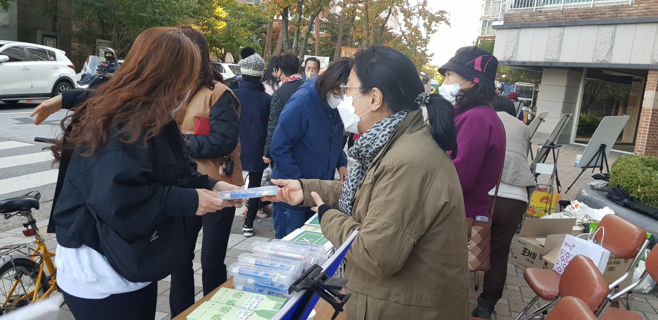 유통기한의 경우 제품의 제조일로부터 소비자에게 유통 판매가 허용되는 기한이라면 소비기한은 표시된 보관 조건을 준수할 경우 식품 섭취가 가능한 기한으로 먹을 수 있는 기한이 늘어나게 됩니다. 그리고 식품용 기구 구분 표시제도에 대해서도 설명해 드렸습니다. 판넬의 설명을 보고 퀴즈를 풀면 치약+칫솔 세트도 드렸더니 어린이부터 어른들까지 모두 재미있게 참여하였습니다.