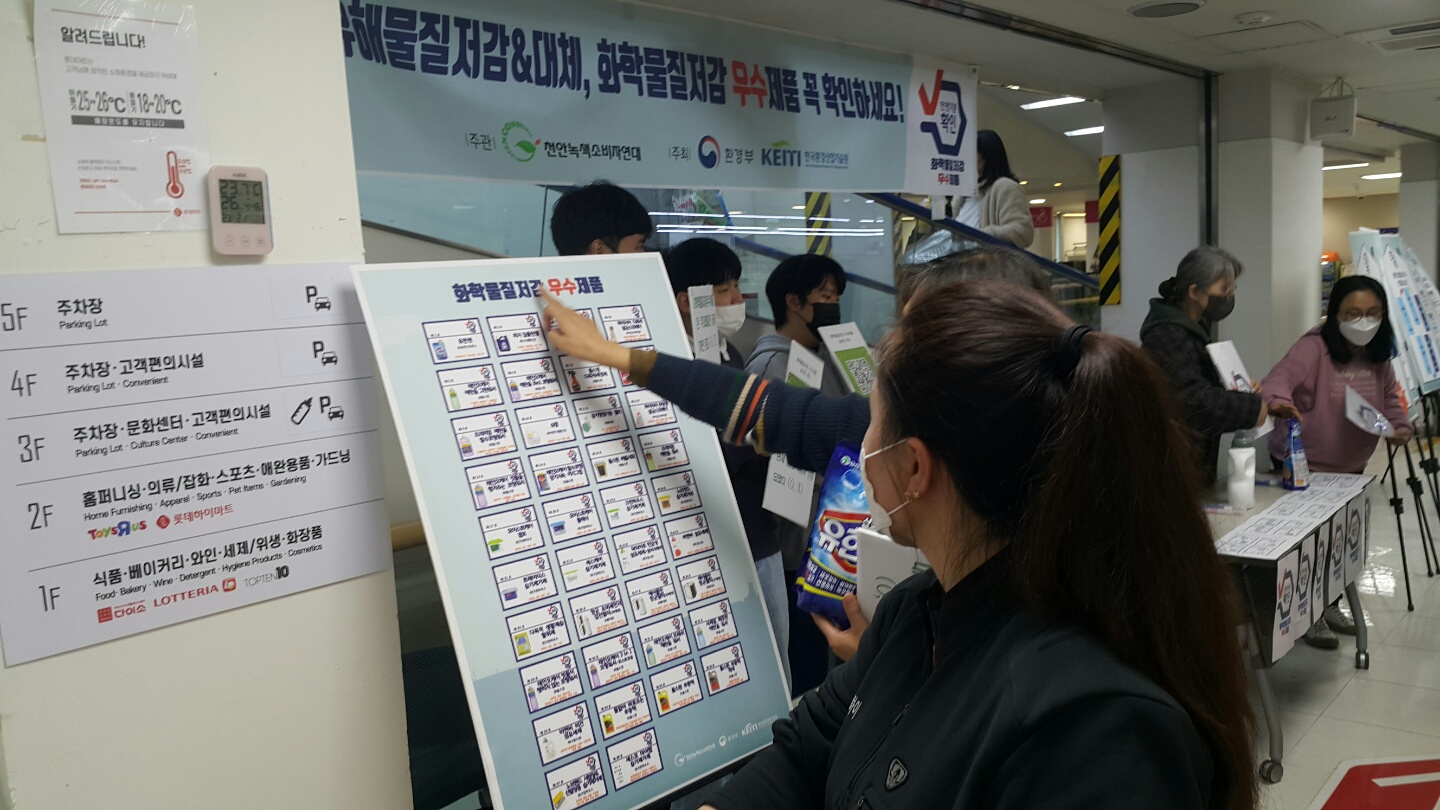 롯데마트 성정점에서 화학물질저감 우수제품(화우품) 홍보 캠페인을 진행했습니다.