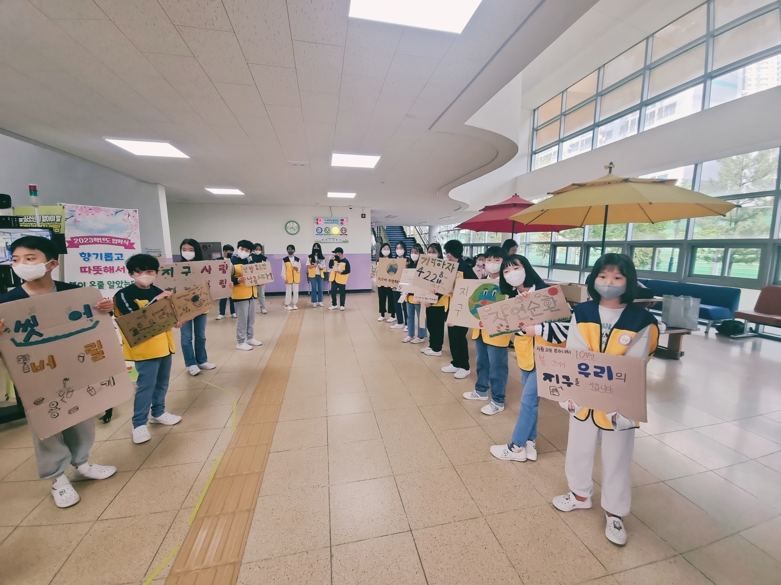 올해 천안와촌초등학교가 종이팩 수거 캠페인에 동참합니다. 활동 협약식과 함께 재학생들이 직접 만든 손피켓을 들고 학교에서 자원순환 캠페인을 진행했습니다.