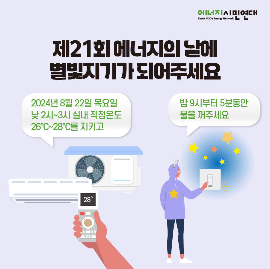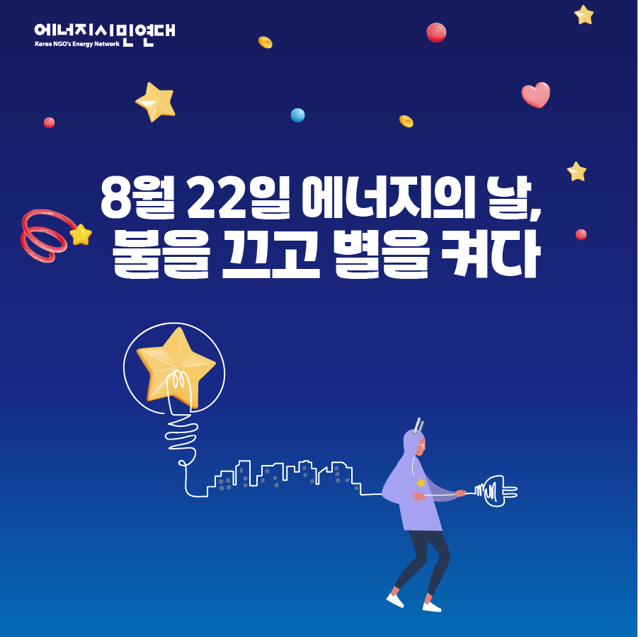 에너지 운동/에너지의 날 [0822_불을 끄고 별을 켜다 ⑥] 8월 22일은 에너지의 날!! 별빛지기가 되어주세요. 천안녹색소비자연대 2024. 8. 20. 15:48 저작자표시 (새창열림)