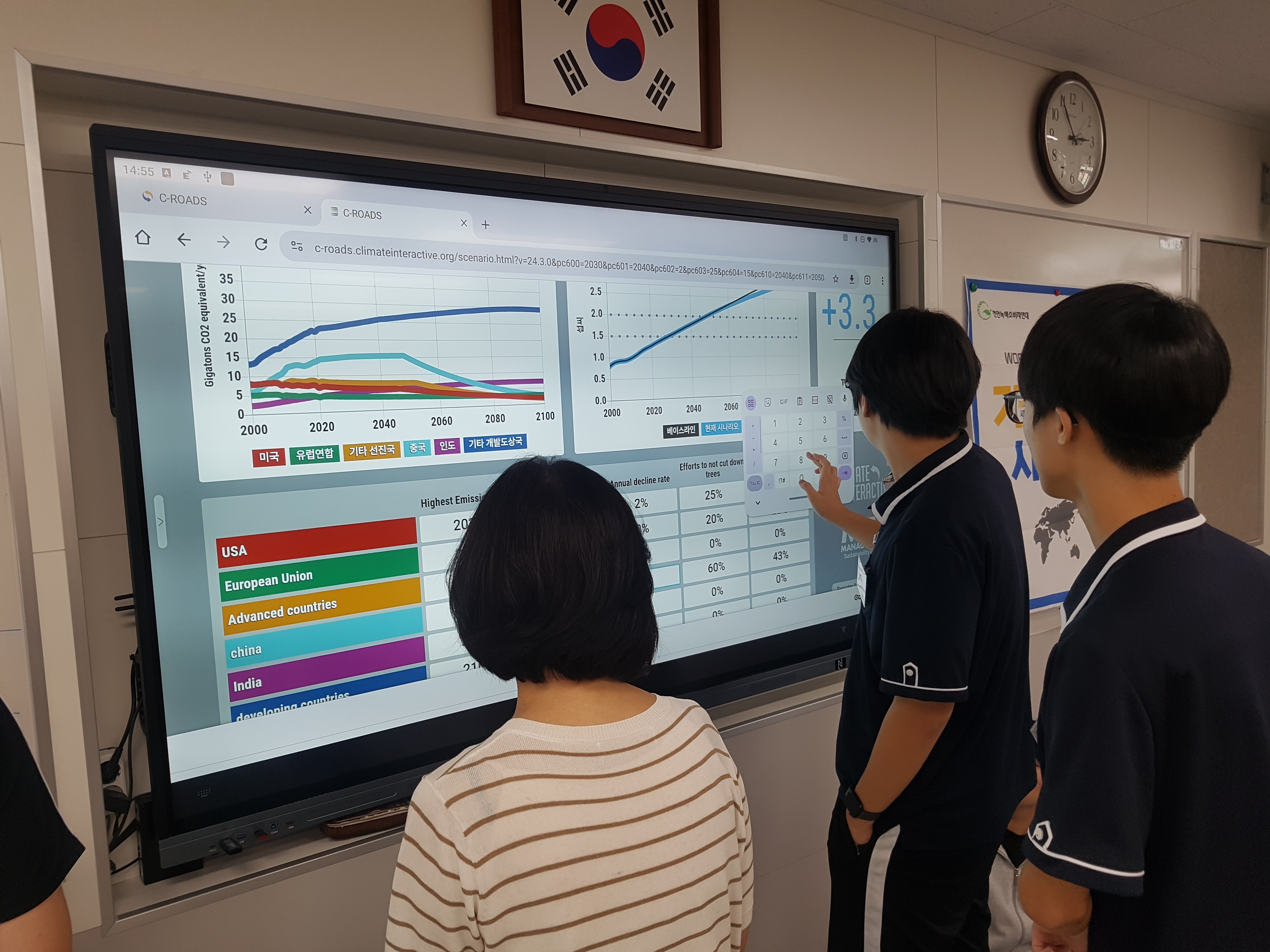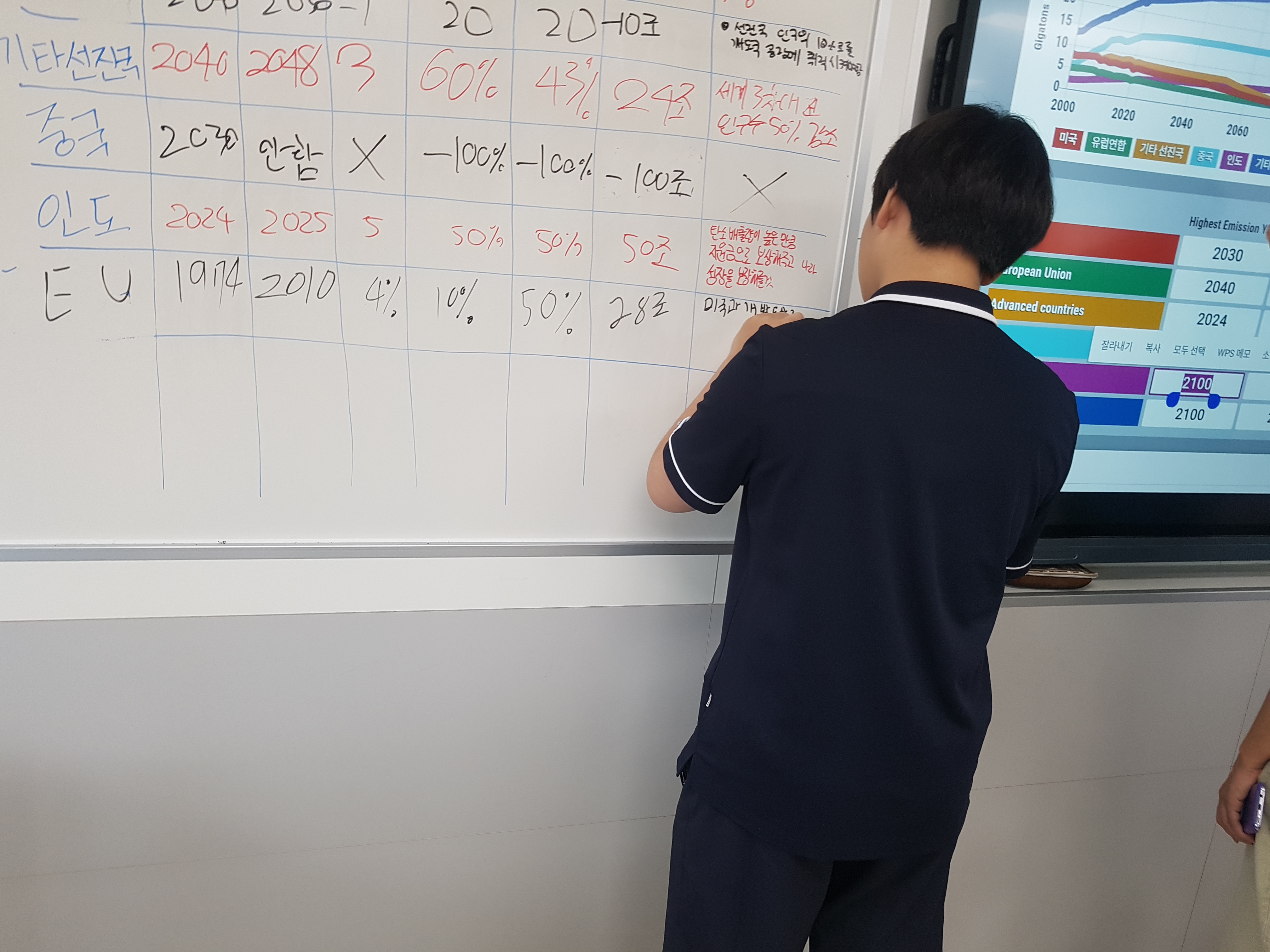 천안고등학교 친구들과 기후변화협상 시뮬레이션 함께 했습니다. UN세계기후회의의 형태 그대로 진행되는 이 활동은 미국/유럽연합/기타 선진국/중국/인도/기타 개발도상국 6개 그룹으로 나누어 각자의 나라가 언제부터, 어떤 속도로, 얼마큼의 탄소배출량을 줄여나갈지 협의하고 또 협상합니다. 이 과정에서 지구평균기온 상승폭을 낮추는 것이 얼마나 어려운지 체감하게 됩니다.