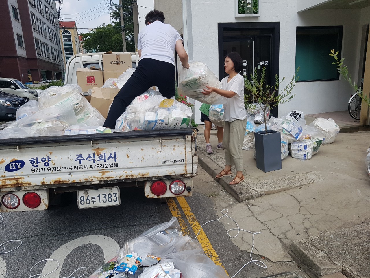 땀 흘린 김에 멸균팩은 따로 구분해서 천안아산한살림에 전달했습니다. 총 134kg으로 멸균팩의 양이 갈수록 많아지네요.