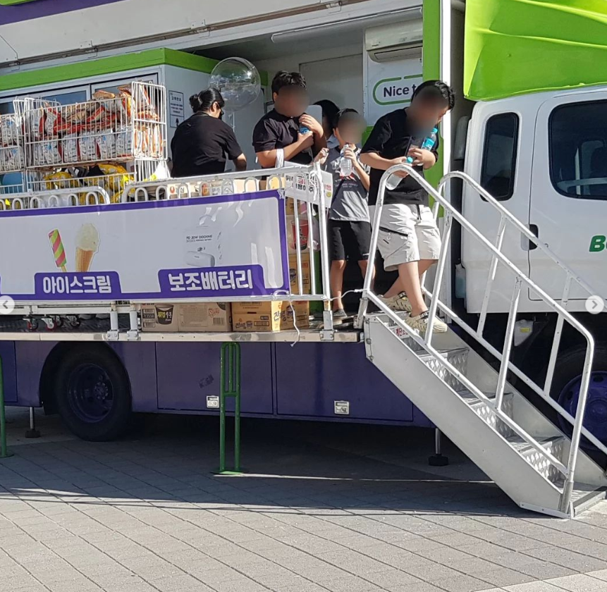 사실상 행사장 내 유일한 식수공급원(유료였지만)인 이 편의점은 평지가 아닌 트럭 위에 있어, 계단을 오르내려야만 이용가능합니다. 장애인이나 노인 등 이동이 불편한 시민은 물을 살 수도 없는 구조입니다. 모든 방문객이 조건없이 접근가능한 음수대가 필요합니다.