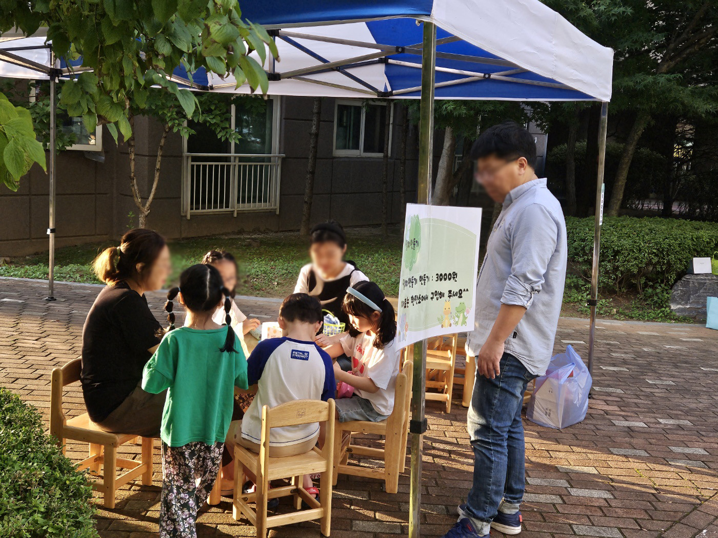 하원 후 시작한 장터는 늦은밤까지 계속되었다고 합니다. 어린이집 졸업생과 학부모님들도 참여하여 뜻깊은 행사가 만들어졌습니다. 앞으로도 행복하고 깨끗한 세상을 함께 만들어가길 희망하며 기부증서와 함게 감사의 마음 전했습니다.